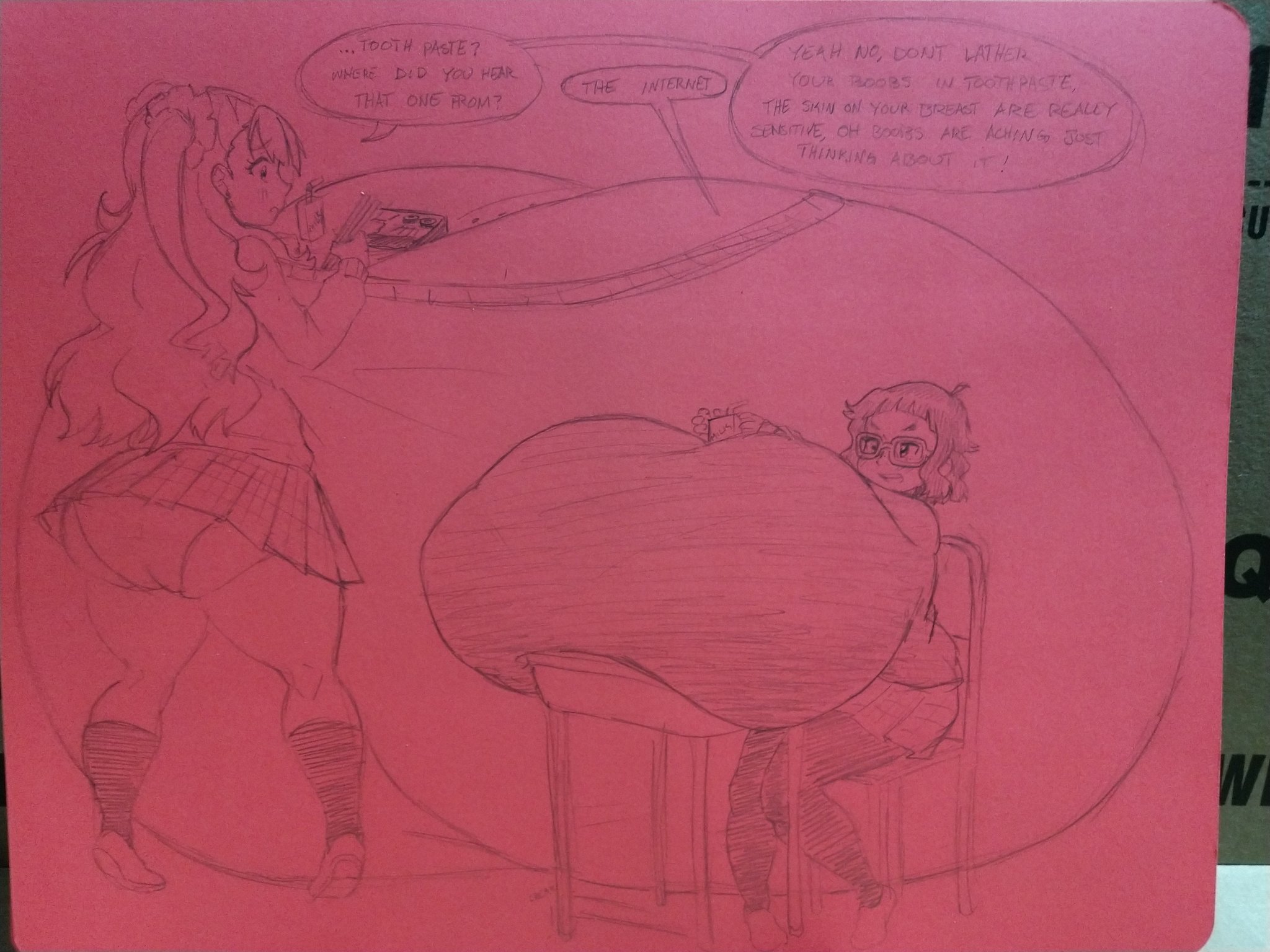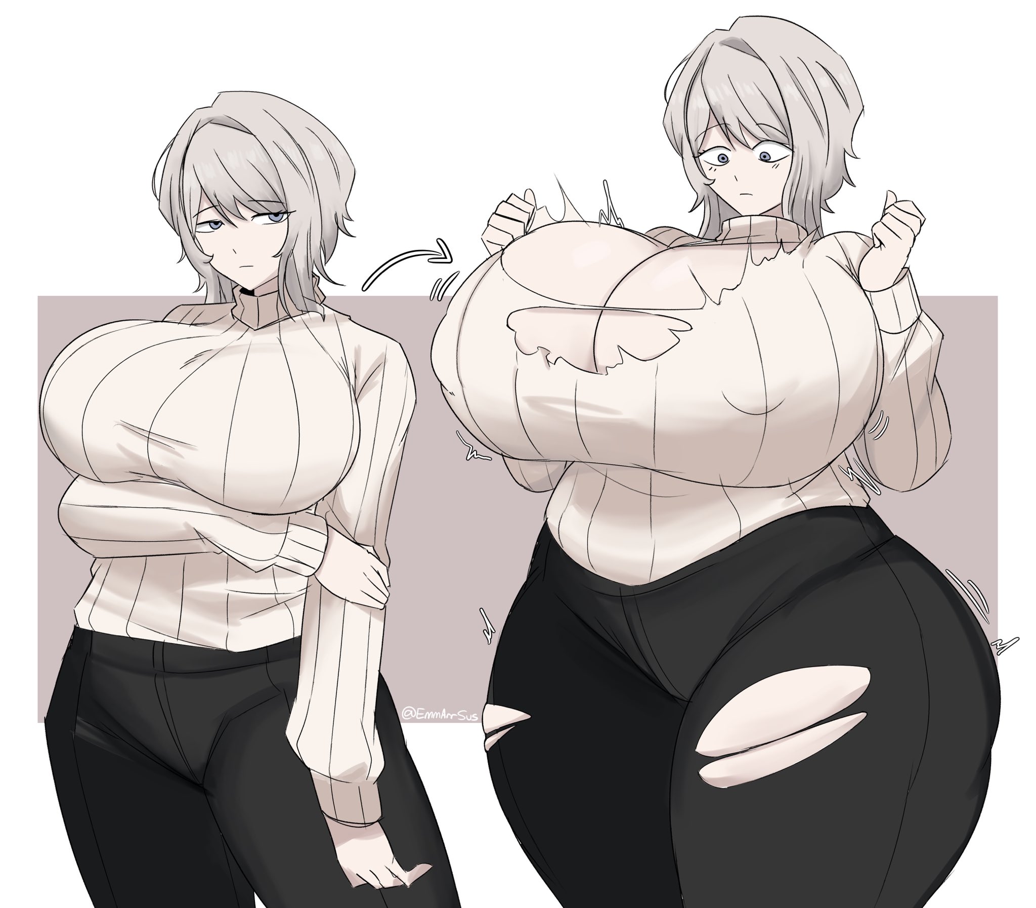 >>11444148I think 1-2 can be enough of breasts growth, if it's permament, cannot be altered (i mean it could be cut off, but what if they just grow back), but if partner is down to it then up to 4-5, but basicly what this anon said >>11444178If it's reversible, she or me having the option to edit her breasts size, then up to a bed size maybe. Filling out a room with her tits flesh is also hot, but beyond that becomes kinda boring or odd to me? Like i love to look at Piyokorota art, because somehow they keep it sensible even when the girl tits are as big as a castle, but i'm not sure i want to make anyone's tits that big.>>11444180art collection wise. It's strictly 2D: I do love looking at oddities where the female's breasts goes through suddenly breast growth due to macromastia or pregnancy buffs her tits size. Especially, if it doesn't comes with skin tearing or any life threatening downsides. Like the woman whose breasts produced enough milk to fill up a fridge is hot, but the logisctic to feed that level of milk production must suck. If there was a freak or degenerate who would be into producing so much milk and accepting all the life altering changes, then i love to put them in such situtation.I had a dream where i turned a thief into a female, then expanded her tits, whenever she tried to run away, before the police arrived. So i do adore the idea, to give someone oversized tits on a whim.