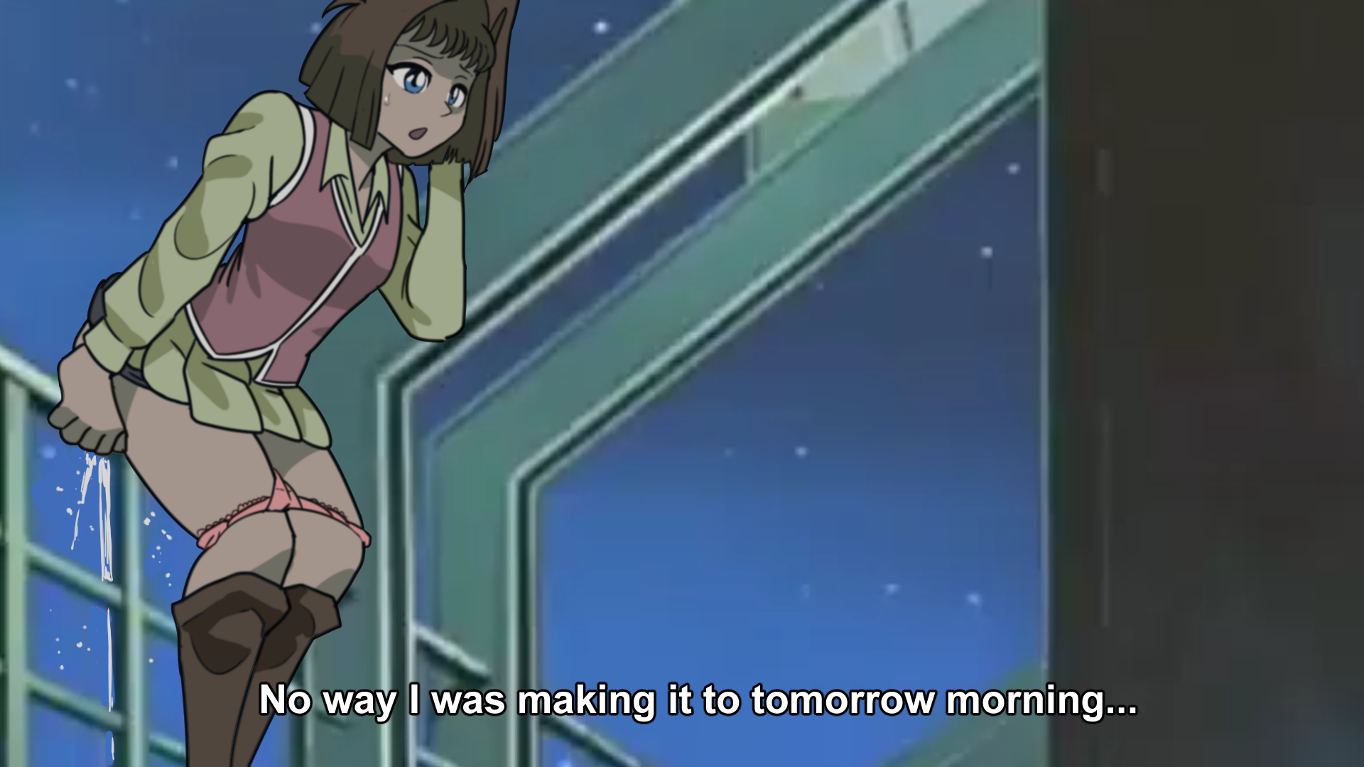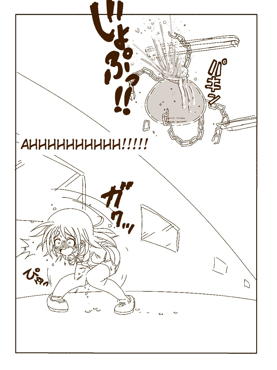 The ending treats it as if she barely made it but she literally already wet herself in this panel.