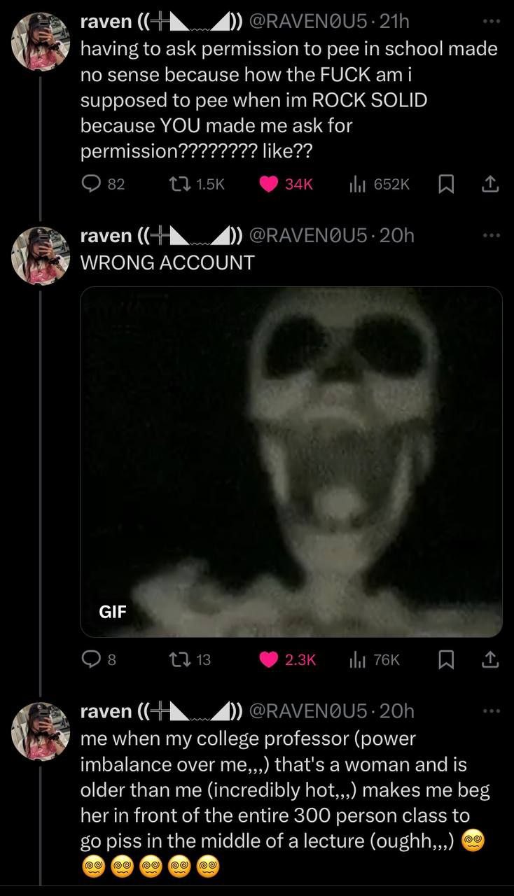 Not quite oyakodon peeing but the discussion reminded me of a video where the daughter in the passenger seat of the car films her mom desperately pulling the car over and running around to the passenger side door, yanking her jeans down to release a huge piss burst before freaking out noticing there's a cop car nearby. Went searching for it but for the life of me I just can't find it at the moment. Not really much to see in it anyway, but those truly candid not meant to be porn videos have a special appeal to them