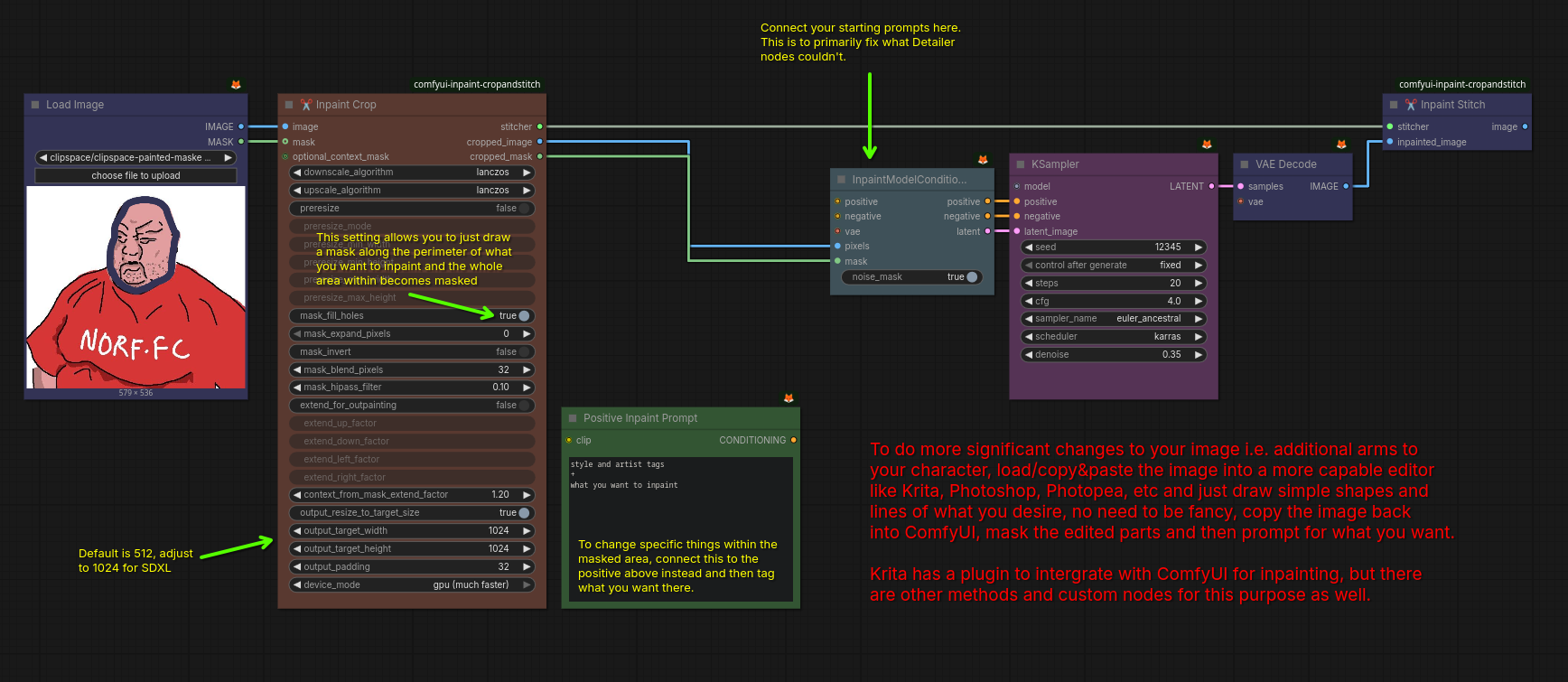 >other resourcessite that provides previews for tags in a standardized way, with categories for heads, styles, composition, postures, gestures, and artists (dark mode top right):https://tagexplorer.github.io/ornateanon's guides:https://mega.nz/folder/IpUTXaxY#rvMo-9-VQt5m_ACJnw-ltA/folder/8hkTWQKQ>Inpainting and Upscaling v0.1.pdf>Regional Promptingv0.4.pdf"dragonanon's guide to multidiffusion and compositing (for forge)":https://desuarchive.org/d/thread/11200675/#11202492/ddg/ walking two anons who just installed stable diffusion through everything (the latter of whom asked how to inpaint dicks specifically and gets walked through such):https://desuarchive.org/d/thread/11283656/#11284465https://desuarchive.org/d/thread/11306933/#11307563blurry eyes switches to comfy and shares his progress on such, with input from /ddg/:https://desuarchive.org/d/thread/11430764/#11434339some stray comfy nodes recommended by /ddg/:https://desuarchive.org/d/thread/11416994/#11417002guides for anyone just starting:https://civitai.com/articles/4808/making-images-great-again-remasteredhttps://betterwaifu.com/blog/stable-diffusion-nsfw (uncanny valley warning)>>>/trash/sdg guide for anyone just starting:https://rentry.org/sdgguide>>>/vt/vtai Animator (online tool)https://tensor.art/template/893879178858869643