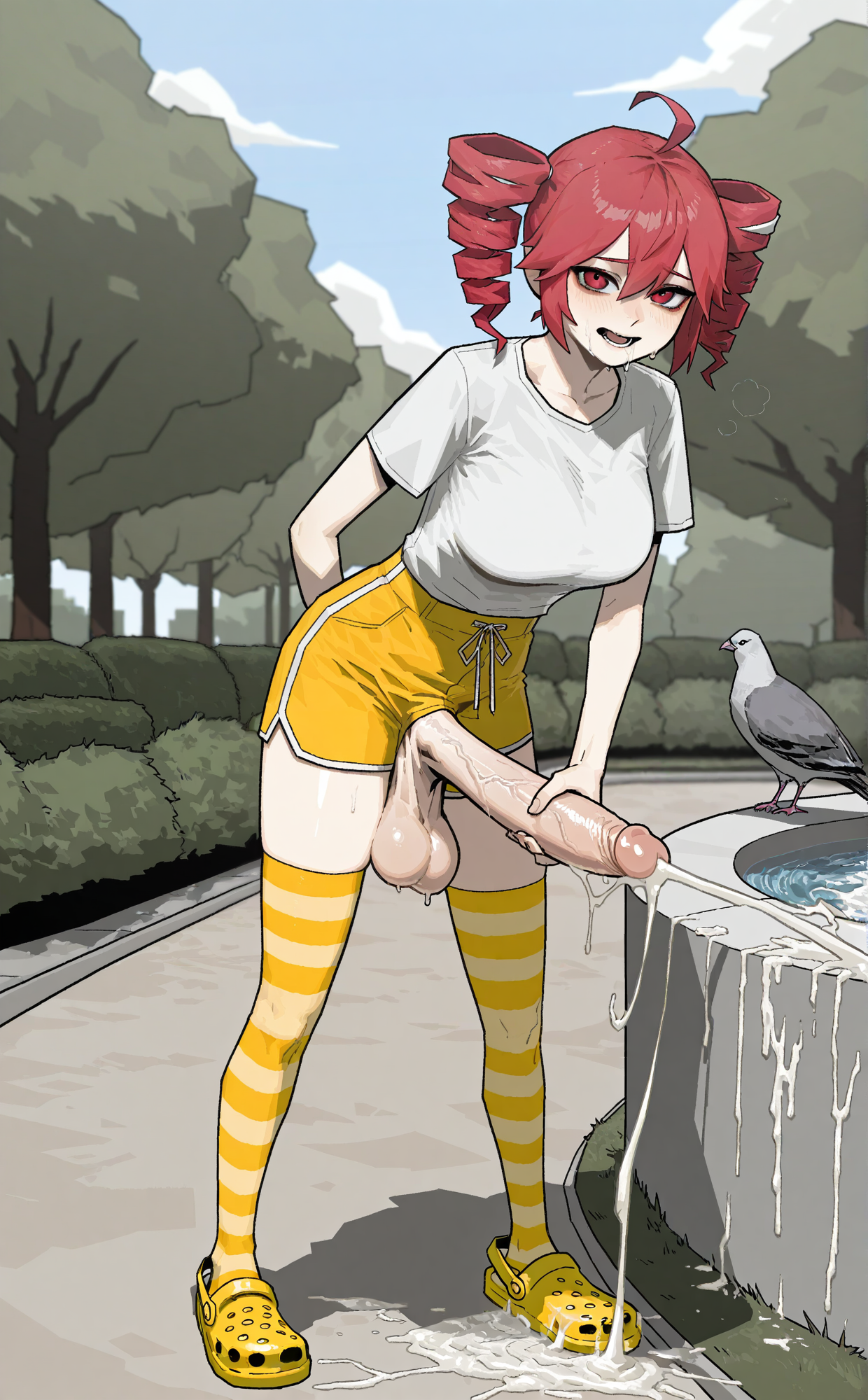 >>11461135I use Forge and gen mostly noballs futa. It's largely dependent on the model you're using as well as the artist tags. I keep "testicles" and "balls" in my negative prompts which does a pretty good job on its own. As >>11461192 said:>One thing I found helps with many IL models is simply to add "pussy"This will do the trick in many instances as well. In my experience, working with the "large/huge clitoris" tags just tends to give girls a dong AND a clit (example of this >>11456135) and sometimes offsets the penis to a degree that looks awkward (see picrel for an example). Additionally, I've noticed models struggle with flaccid futas and will almost always add balls to gens with "flaccid/flaccid penis" in the tags.I also found a LORA that adds a more rounded shape giant clit (seen here >>11460753) that you can find on Civit by searching for "long clitoris" that works okay sometimes. I've had to play around with its weight and trigger words and sometimes it looks a little too much like a dolphin dick.ANYWAY - the takeaway is it's inconsistent to gen futa without balls but hopefully some of the stuff I mentioned help. Sometimes you just have to tell it to roll through a batch and pray to the gacha gods