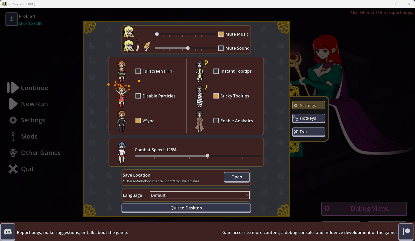 Improvements for new and first time players + lewdification of early game content should probably be higher priority. Last I tried your mod it was essentially a reskin of a few npcs and skills with very little of anything that would make it a good hentai game that can catch people who aren't already fans of Darkest Dungeon.