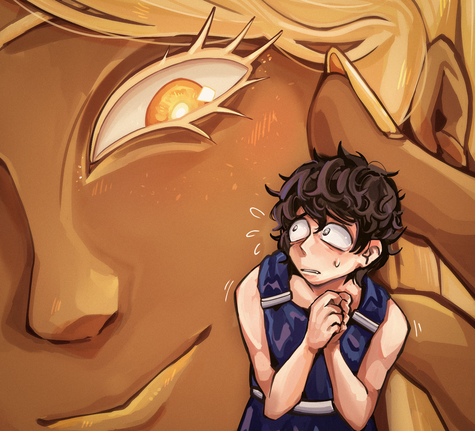>his gaze fixes on you, a beckoning finger outstretched as he slightly opens his mouth again