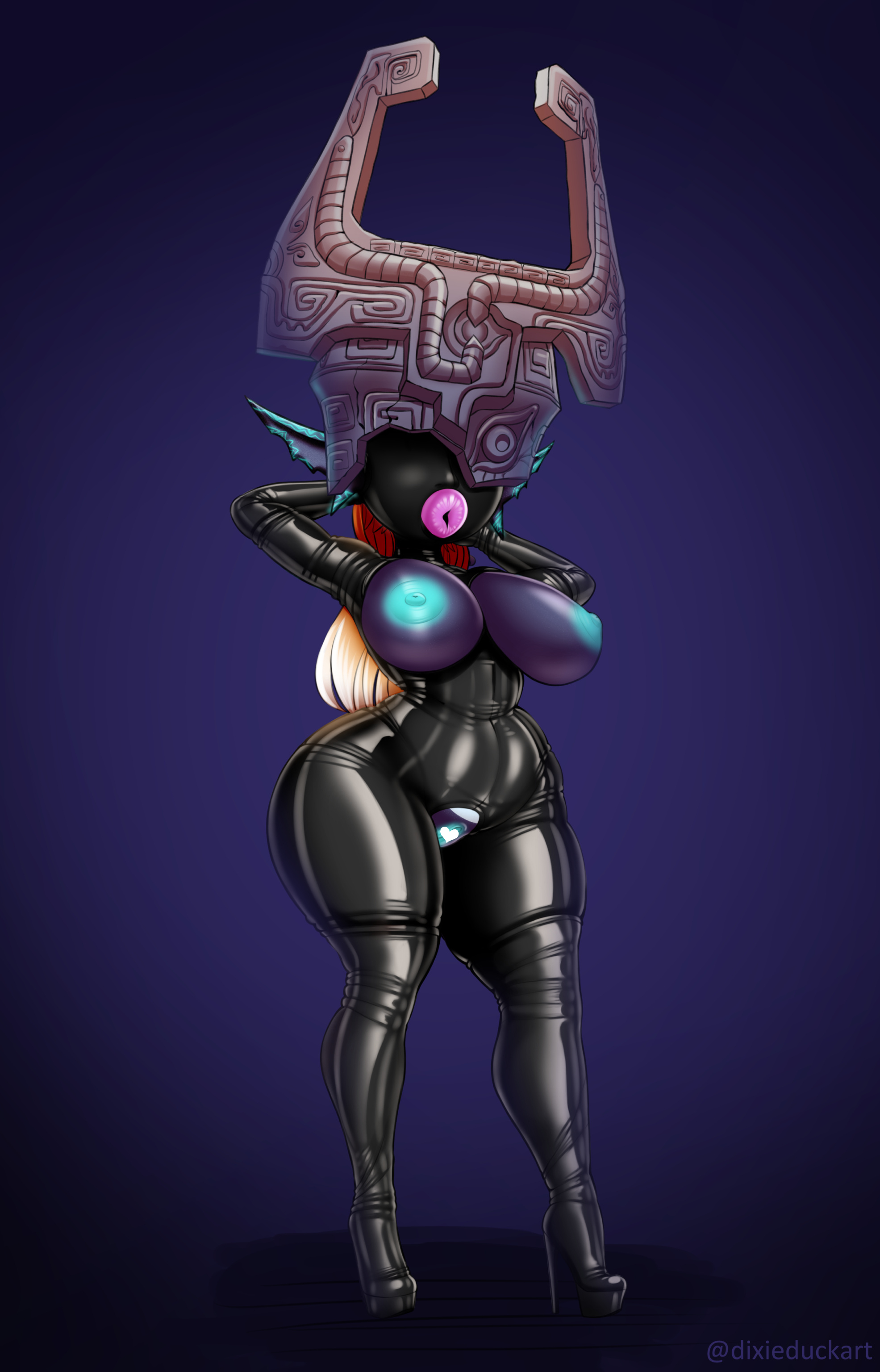 >>11460548>I wish for something about this picGranted! You now live in a pornified world, where stuff like gender bending drugs, magical cosplay outfits, and "turn your gf into an onahole" companies exist. And, relevant to you, cursed video games and media, like MMOs that turn players into their overly pornified avatars, sometimes inside, and sometimes outside of the game.So, good news and bad news. The good news is that the you in this world has been TF'd into Midna after you played a cursed copy of Twilight Princess. Midna escaped the game, stuck you with her curse, and ran off in her uncursed form. Bad news is I forgot to account for minor changes in the Earth's rotation and a few landscape changes when I placed you into the world. You SHOULD have been placed where you lived, or close to it, at least. You WERE placed in a pond of living latex. It won't kill you. On the contrary, you can breathe in it, and it'll pleasure you thoroughly as it bonds with you. Latex is perfectly safe in this world, and can be worn indefinitely. You won't overhead or need to "use the bathroom" or anything... buuut when you manage to pull yourself to shore, you'll look like pic related. The latex is alive, and can shift and change how it looks on whoever it's bonded with, and LOVES fucking with people. It's a good thing you have such big ears, because it thought it'd be funny to blind AND expose you. It even stuck your fused shadow to your head to use as, erm... "handlebars".You'll end up stumbling around in this world where hentai is an everyday thing as a fucktoy. What are you going to do, resist? No, you're going to hear a woman's voice, muttering about her new cock, as she shoves it against your plump lips before emptying herself inside of you. You'll feel vines that you were holding onto for guidance go inside of you and plant seeds in you, which you'll end up pushing out of you, as if laying eggs, as you stumble around a the forest. You'll feel some kind of wolf... person?
