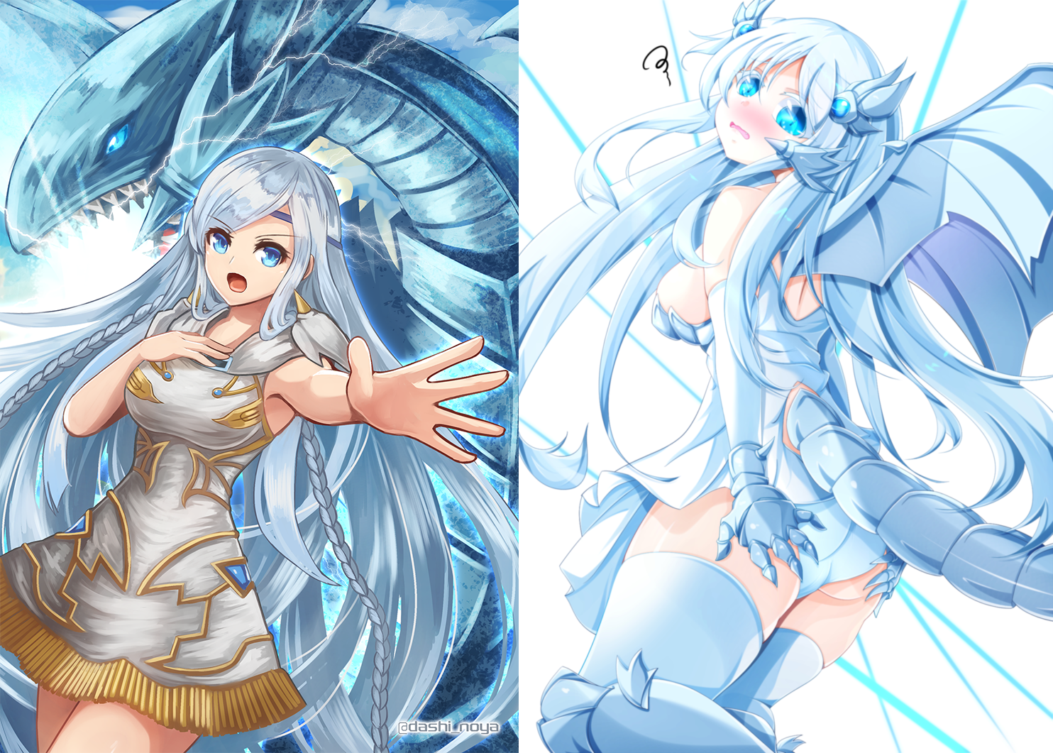 >>11466674Granted. Several millennia ago, when monsters and spirits had a much easier time manifesting on Earth, you were the daughter of the mighty White Dragon, protector of an ancient Egyptian civilization. And before you ask: you and your mother are both shape-shifters who can assume both dragon and human shape.You two (mostly your mother) spent life receiving worship and offerings, conducting ceremonies, and blasting the occasional monster. That changed one night, when both of you got assassinated while you were in human form. Quite a lot of things happened after that time, but the important bit is that several magicians "sealed" magical spirits in various ways, vastly limiting the amount of magic in the world. One such method was entombing the souls of monsters into stone tablets.Fast-forward to now... Some eccentric billionaire discovered the tablets, and decided to use them to create a card game, with the idea being that the more popularity the game gains, the more "worship" is directed at the monsters depicted in said cards, which would then be used to do... something, IDK, the guy will die less than halfway throughout the story. The important part is that due to his plan, spirits of the past will inhabit the cards. Normally, the spirit could be anything, and would be "shaped" by the power and personality of the monster linked to that specific case. You are kinda of a special case, though; your mother gets to fully reincarnate in the card that depicted her original form, while you will be assigned to a derivative - the Blue-Eyes Toon Dragon.Okay, but what the fuck does that MEAN? Well, good news is, you and your mom get to take on a corporeal appearance again, as long as your owner allows it. Bad news is, your human form is now significantly shorter and teenagey, while your dragon and hybrid forms are outright chibis. Worse news, you have an owner now - some nerdy girl who, ironically enough, is technically your distant descendant.