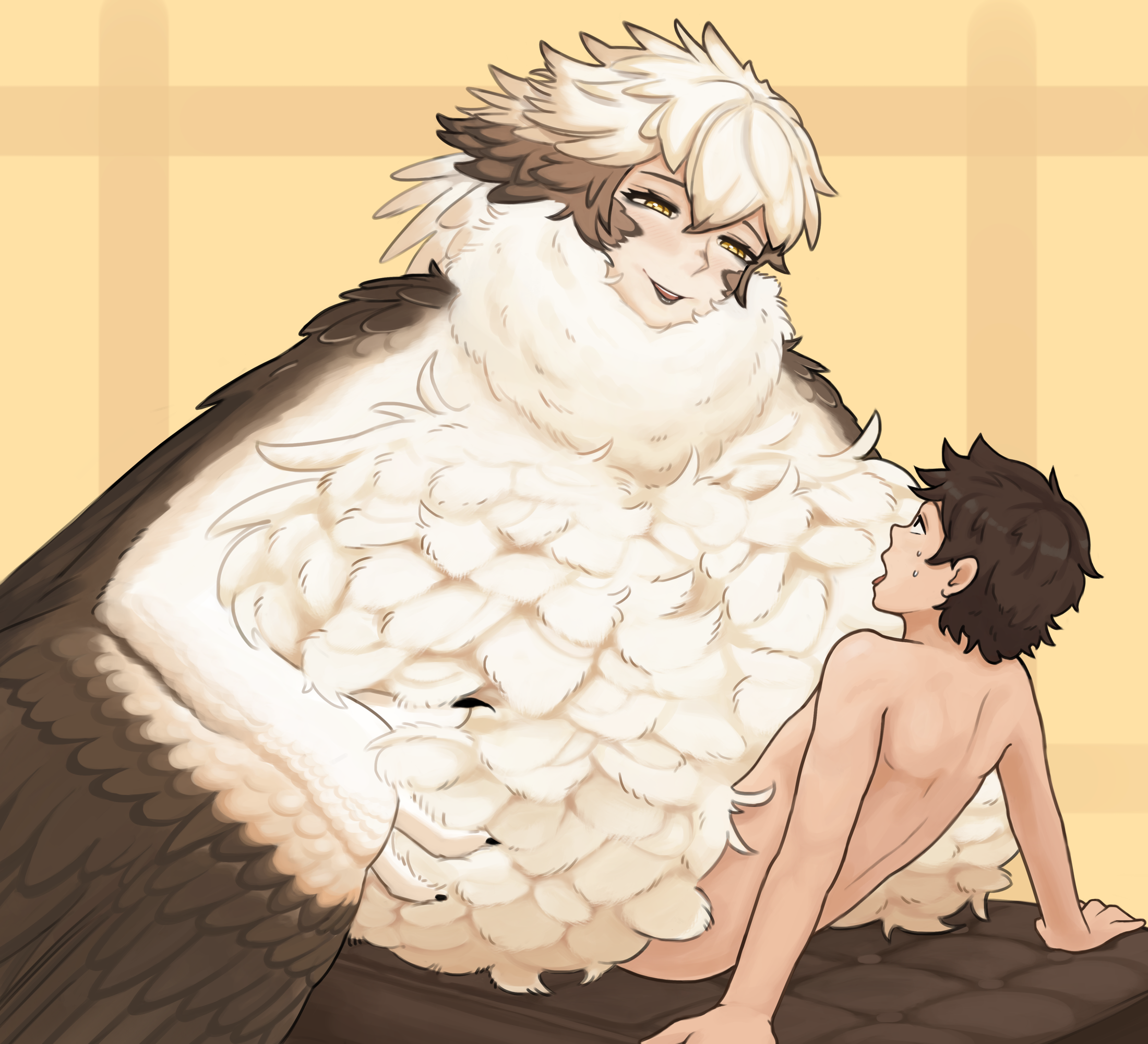 >>11484236Granted, both you and your mother are harpies now. You suffer from, ironically, mild agoraphobia. Wide open spaces make you feel progressively less and less safe, until you will eventually be overwhelmed with the urge to find shelter to "reset" your feelings until your anxiety goes away.That's where your mother comes in. She's a literal mother hen: big and fluffy, kinda like in the pic. More importantly, she will always make you safe as long as you stay close to her. Very close. Could be just pulled against her side, her wing wrapped possessively around you; could be her sitting on your face; could be you climbing inside her clothes and cleavage, letting yourself be trapped between the fabric and her feathers. There are various different methods - not all of them lewd - but all of them will make you feel safe. To be fair, any kind of safe shelter can keep your phobia at bay, like diving into a box or a closet for a few minutes; it just so happens that being (figuratively) under your mother's wing is objectively the most effective method, and the most enjoyable and cozy. Plus she will always accept you.As a result of this mechanic, you will end up becoming a massive mommy's girl. And given the fact that monstergirls have far less compunctions against incest, eventually this will lead in you two developing romantic and sexual feelings toward each other. Your mother *might* take a bit of an advantage of this situation; for example, if you two have a discussion, she might imnsinuate that you're just being "cranky", and offer you a feathery wing-hug - as a way to make you give up and let her do what she wants.She's also an adult *monstergirl* with a healthy monster libido, so you can expect her to seduce and fuck other people despite your relationship. In fact, she might do it WHILE she keeps you very close to her.