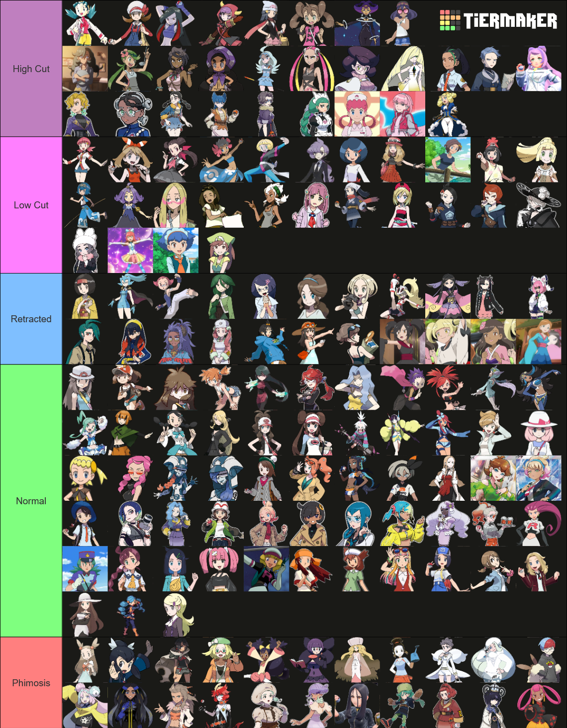 >>11473335Personal feelings. Too many girls to describe everyone. But you might get a pattern with Unova, Alola and kids. Though, I can straight up tell you that Courtney couldn't wash her penis after removing water from the world; Ultra patrol, as technologically advanced aliens would keep proper treat; Prof Sada, as a cavewoman would never know about cut nor washing.Oh, and the template lacks of Hex Maniac, She would have her foreskin retracted.