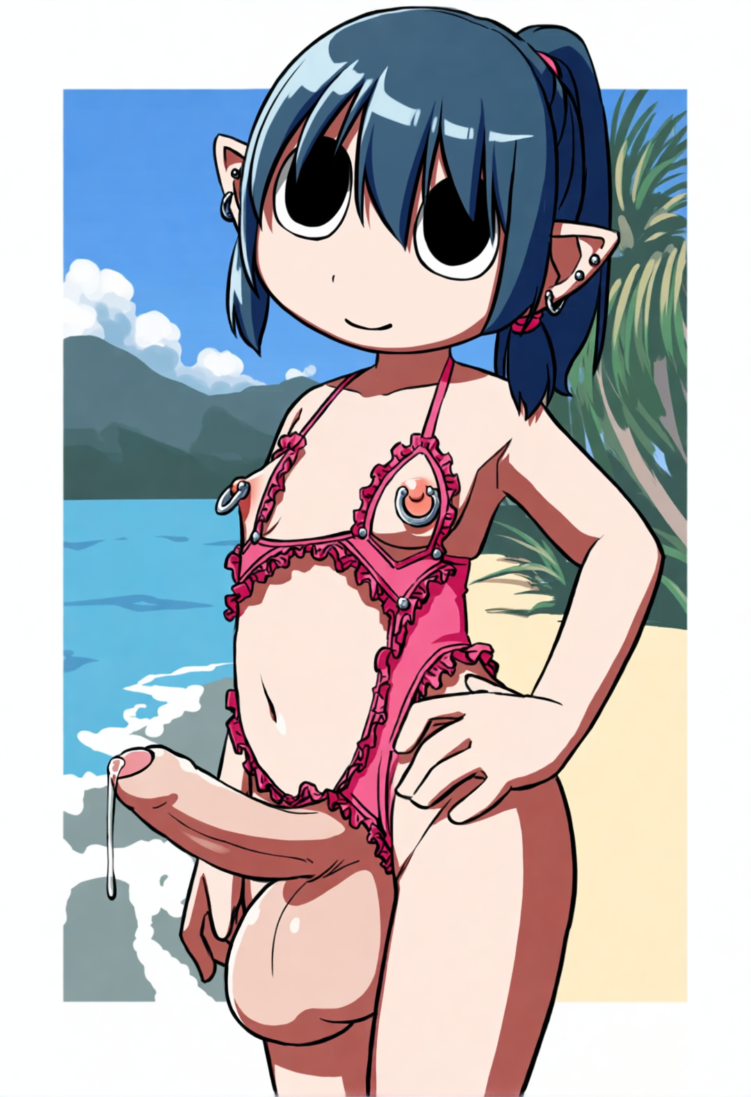 >>11462914Chizuru from Kanokari at the beach like pic resting on her stomach with dick and balls protruding out of her bikini and big hairy asshole peek.