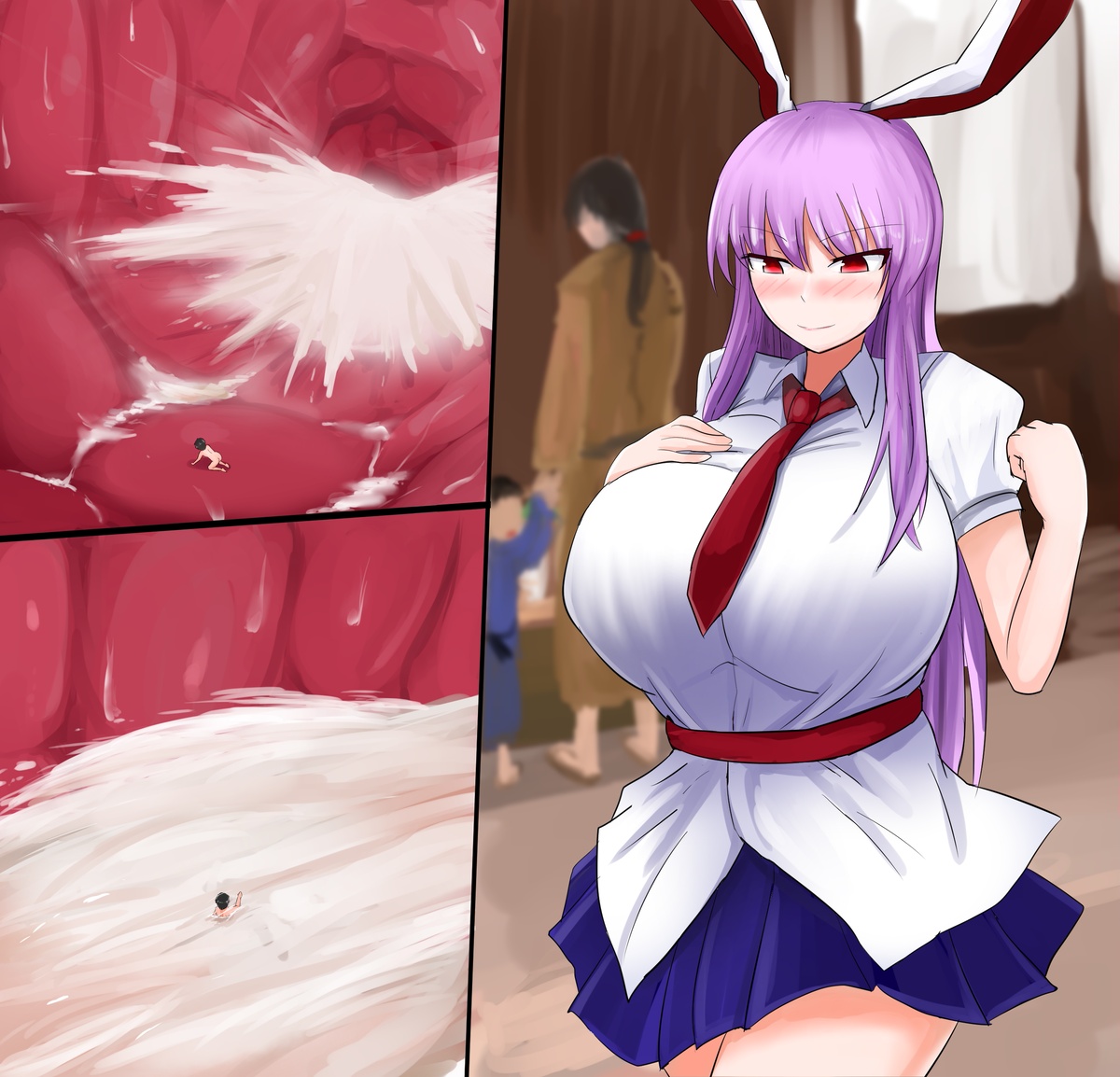 Post anything that involves a tiny getting devoured by a giant lady's huge tits, getting lost in their milk ducts, getting absorbed, etc