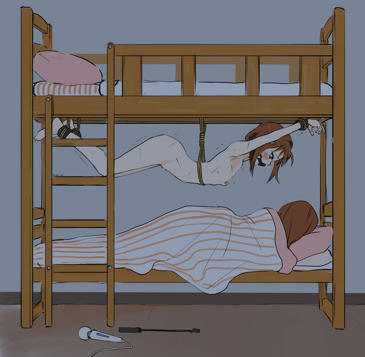 >>11473624>Assuming your slave no longer has a need for certain muscle groups (jaw, arms, etc.) how long could you keep them restrained before any major issues occur?Electrostimulation treatment as used for coma patients is quite effective there. And if you add a few extra electrodes to more sensitive places, oh well~I'd set it up like this - bound to a bed, lying across it with legs spread quite wide and their head hanging off the edge, supported by a stool. Add a harness gag and all you need do is move the stool and pull the plug for facefucking. Add a pillow under the small of their back for better results using ass/pussy. An IV drip for glucose/hydration, a catheter for waste, one electrostim set up for major muscle groups and another just to strengthen her kegel muscles. Remote control dildo vibe up her pussy that you can turn on with a smartphone app so she's nice and ready for you when you want to use her. For bonus points, blindfold her and put earphones in under earmuffs, with a mixtape recording of her own rapes when you were first breaking her in playing on repeat.You could leave her alone with minimal maintenance like that for a good while; just an appliance you use when you want and otherwise ignore, stashed in some cold corner of the basement. Maybe late at night when its quiet you might hear her muffled screams as the scheduled electrostim kicks in.