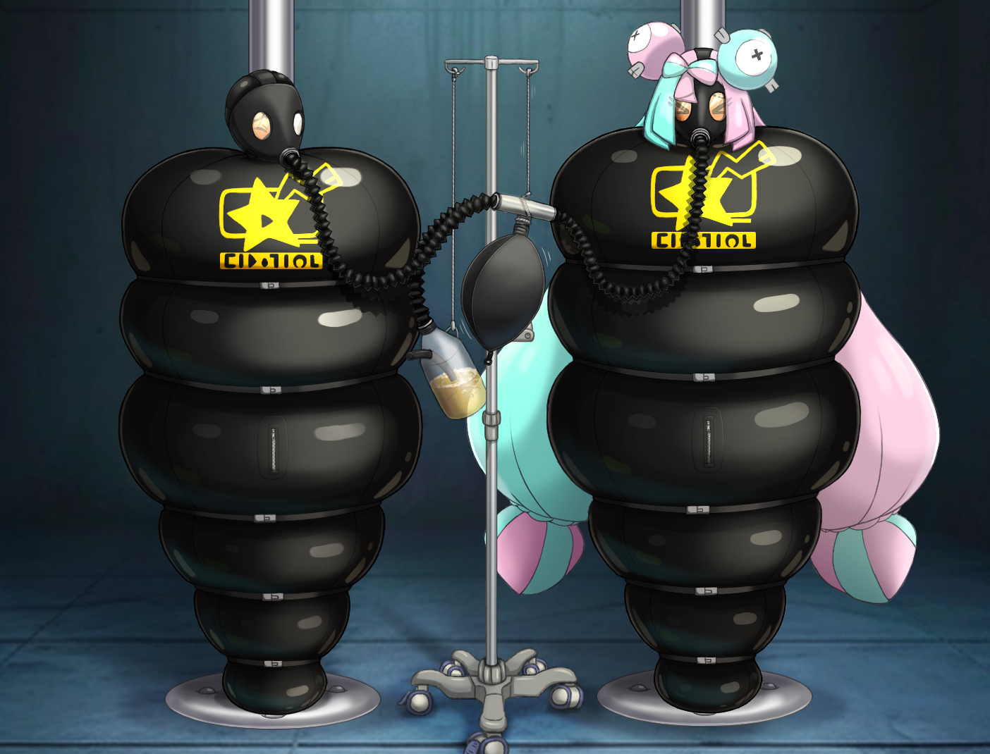 >>11470041is the yellow bottle piss fumes that they have to breathe in? also whats the black black thing in between them?
