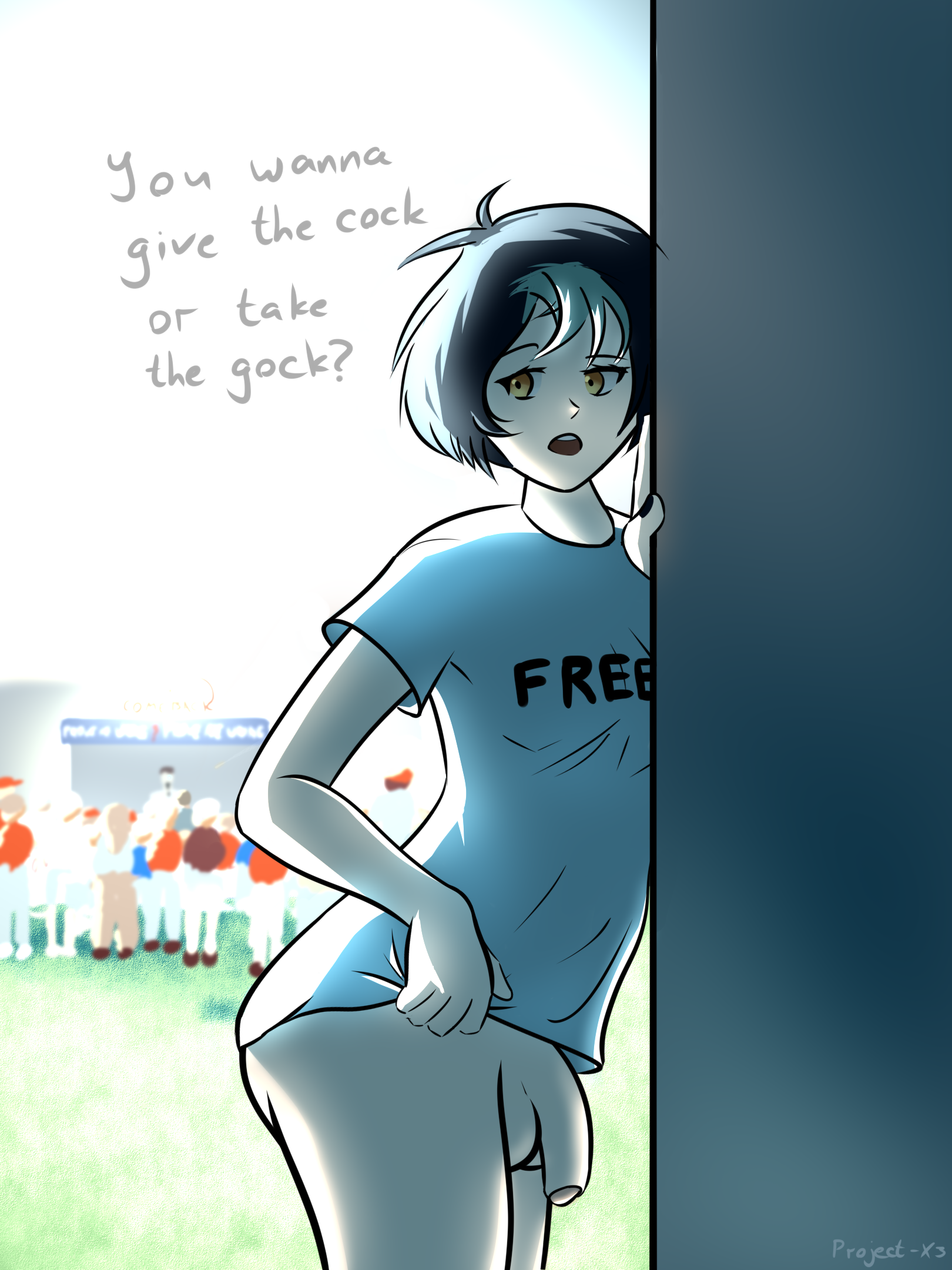 Requesting manga kairi from KH2, as a futanari, with a tape gag on and something like tape or elastic bands around her testicles to squeeze them tight