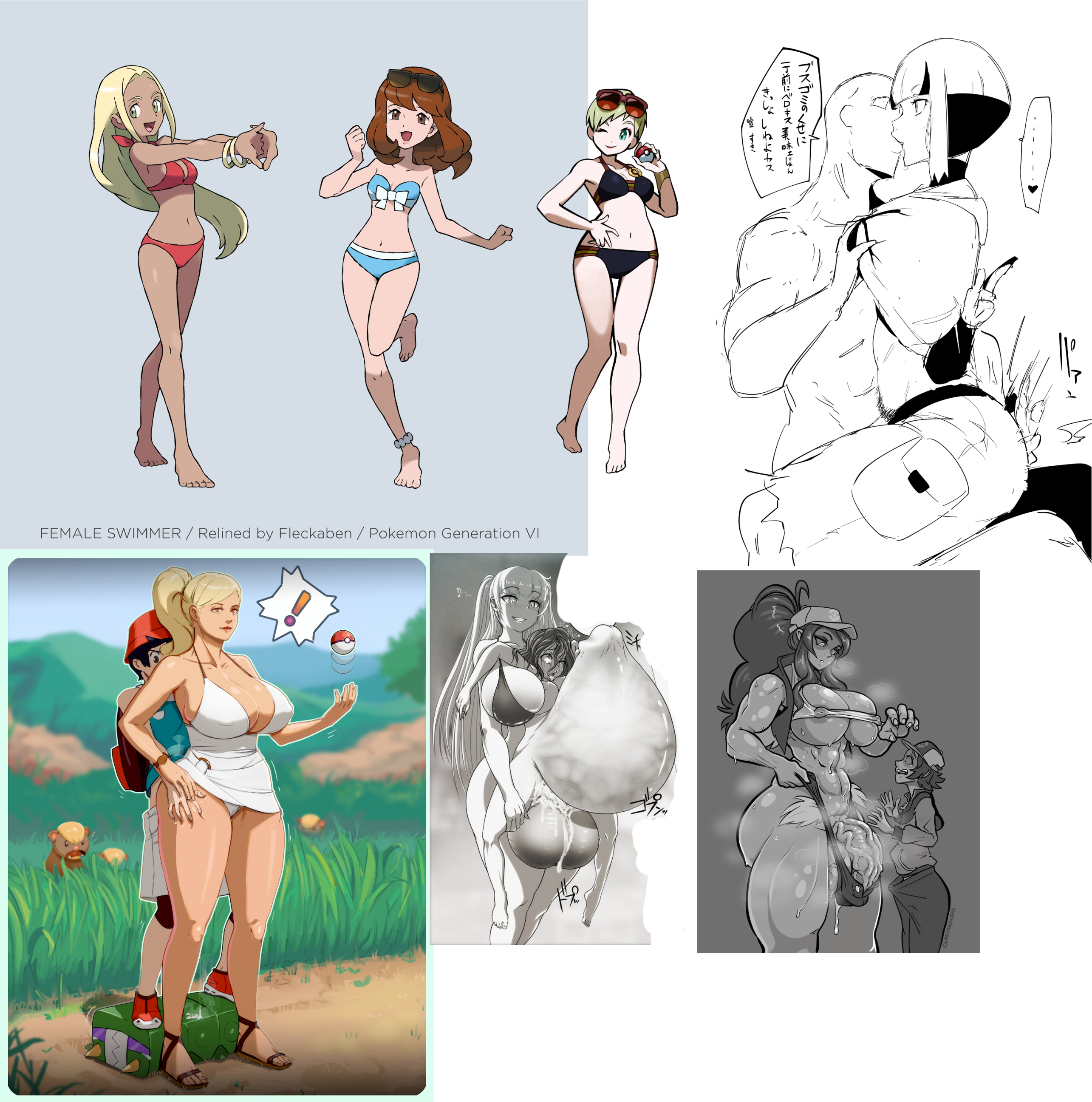 Requesting a well hung futa Pokemon player trainer taking advantage of the game's AI by standing behind one or more of the swimsuit clad NPC trainer women at the top left, fucking them in the ass and cum inflating them while they don't react at all since they haven't seen the player.
