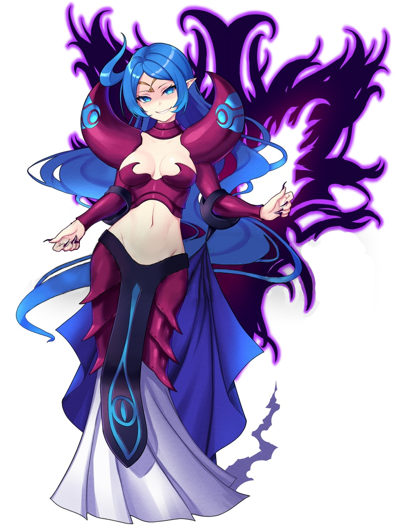 Requesting Valerie with Mawile's maw replacing her legs (similar to the Alligator Girl from Tokyo Gore Police - minus the stitched breasts - https://www.youtube.com/watch?v=tncOesffwUU). Happy about being part pokemon now, she excitedly explores her new anatomy, while spreading her "legs" wide open.