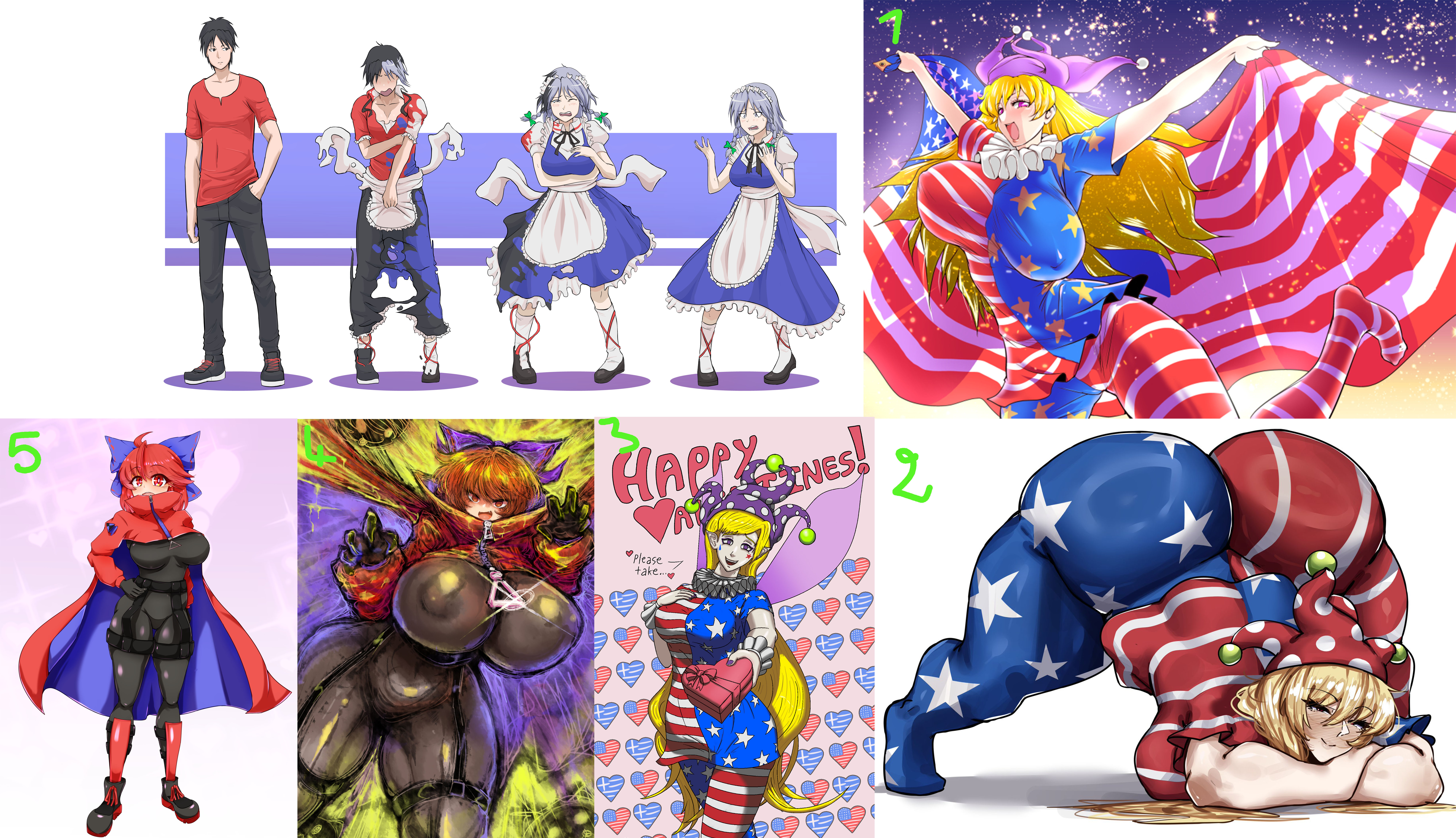 Requesting a gender transformation sequence of either Clownpiece (1/2/3 pictures) or Sekibanki (4/5 pictures) from Touhou Project (Choose one of them) in a 4 or 3 steps TG sequence and you can use the guy from the sequence provided in the reference in the start of the transformation, just change some of his features. Also make him gain height while transforming so he goes from 1.75m at the start of the transformation to 2m at the end of the transformation and you can use the sequence poses and expressions as well especially the one at the end of the transformation.