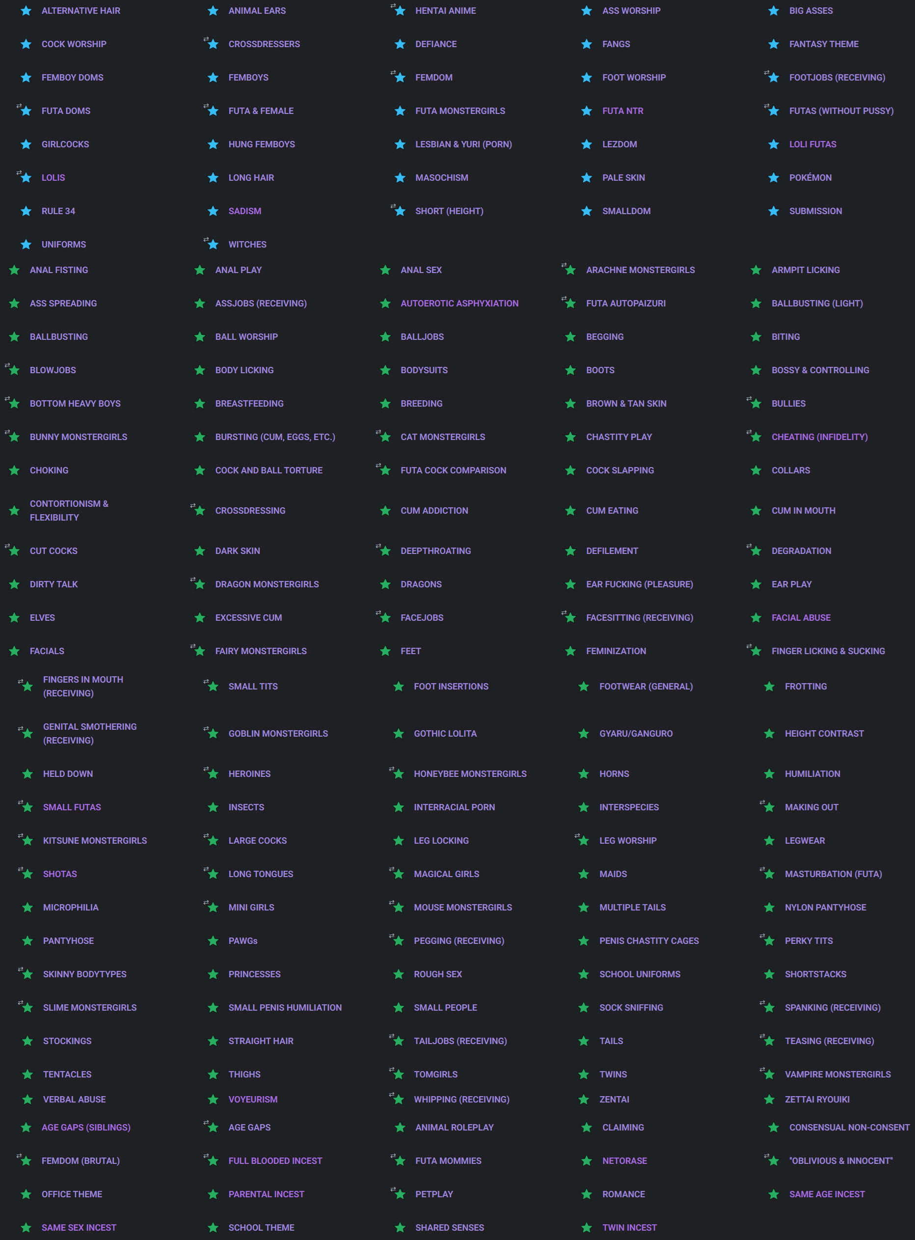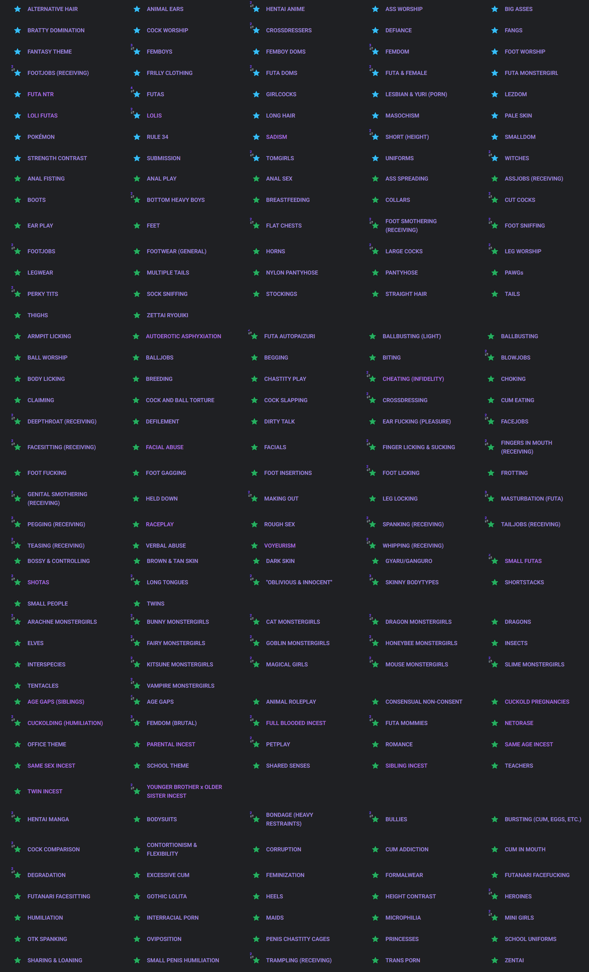 I think its another bug. This includes:Harems (ok)Reverse Harems (so far so good)Succubus Monstergirls (what?)Incubus Monsterboys