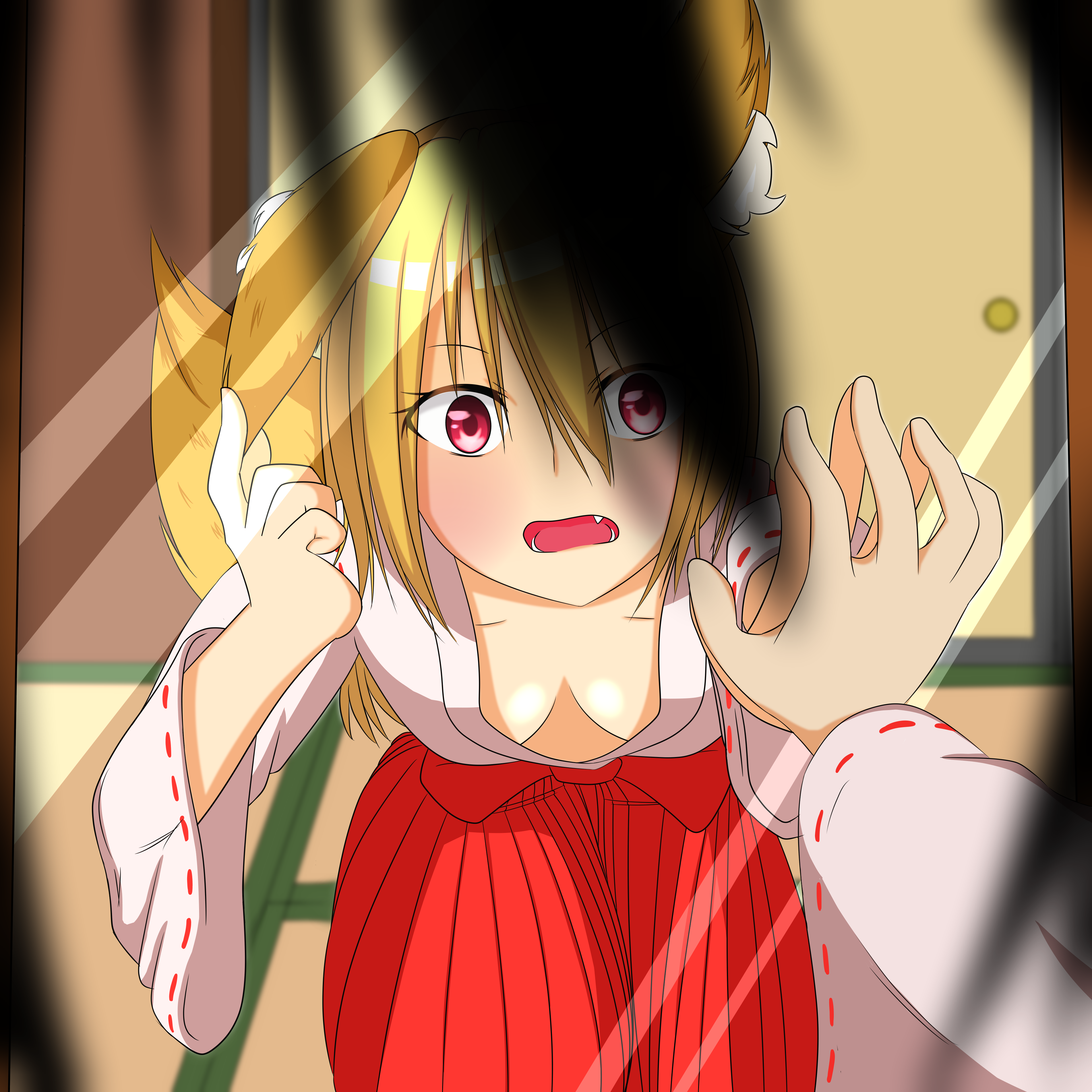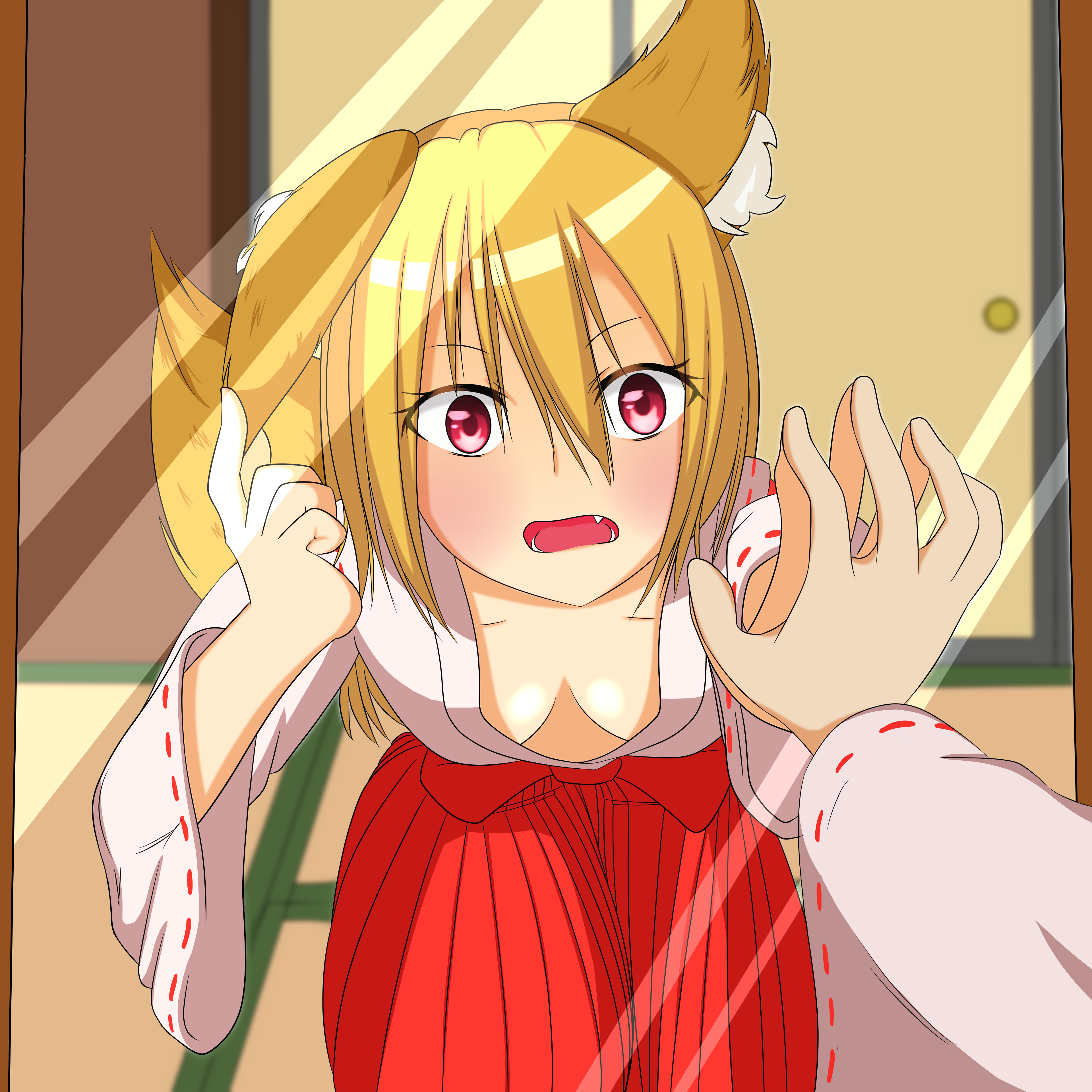 Can you anons help me find an image? It's a kitsune girl in a shrine maiden outfit, leaning towards a mirror with one of her hands touching it, with a first person PoV and a bit of her hair obscuring the view, implied to be post-TSF. Been scouring pixiv for the past two hours because I suddenly remembered it, but have had no luck in finding it.