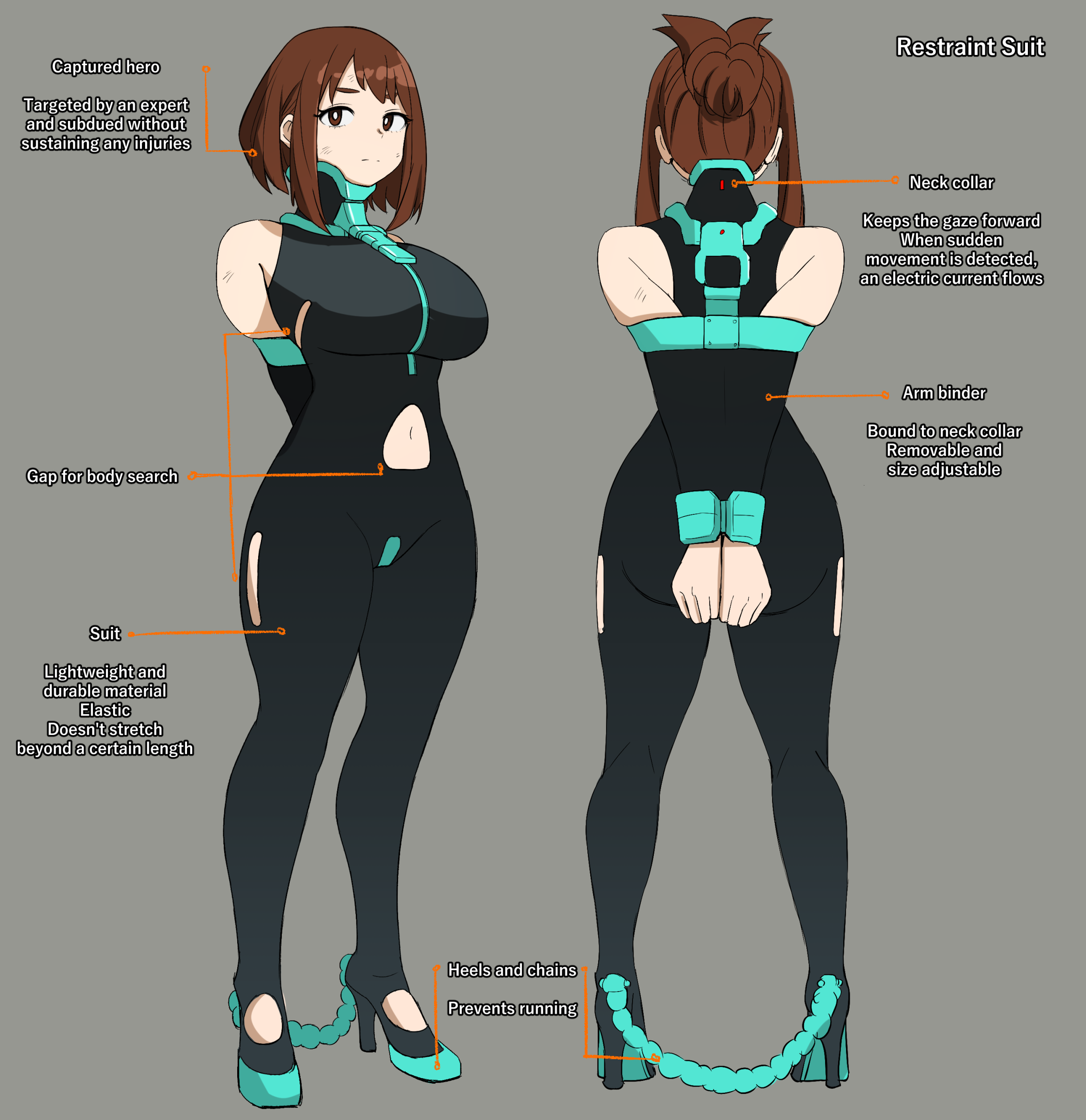 >>11479595Something which I always find lacking in these pictures: No wardensComing from the latex kink angle, they'd obviously wear the same kind of suits, but blue and white instead of orange and black.>They wear gas mask as the facility's air is laced with fumes to keep the prisoners compliant, with additional sleeping gas in case of a riot (Or whatever else the wardens decide to put in the tank, depending on how cruel or horny they feel)>Lastly the wardens wear chastity devices they cannot remove around prisoners. A measure to keep the poor prisoners save. (Or at least that's what the ethics committee demanded.) Alas, the wardens can become quite agitated when being denied release and love to take it out on the inmates.>Could either be same or opposite sex depending on what is deemed 'safer' (Or what the artist wants to draw/write more)