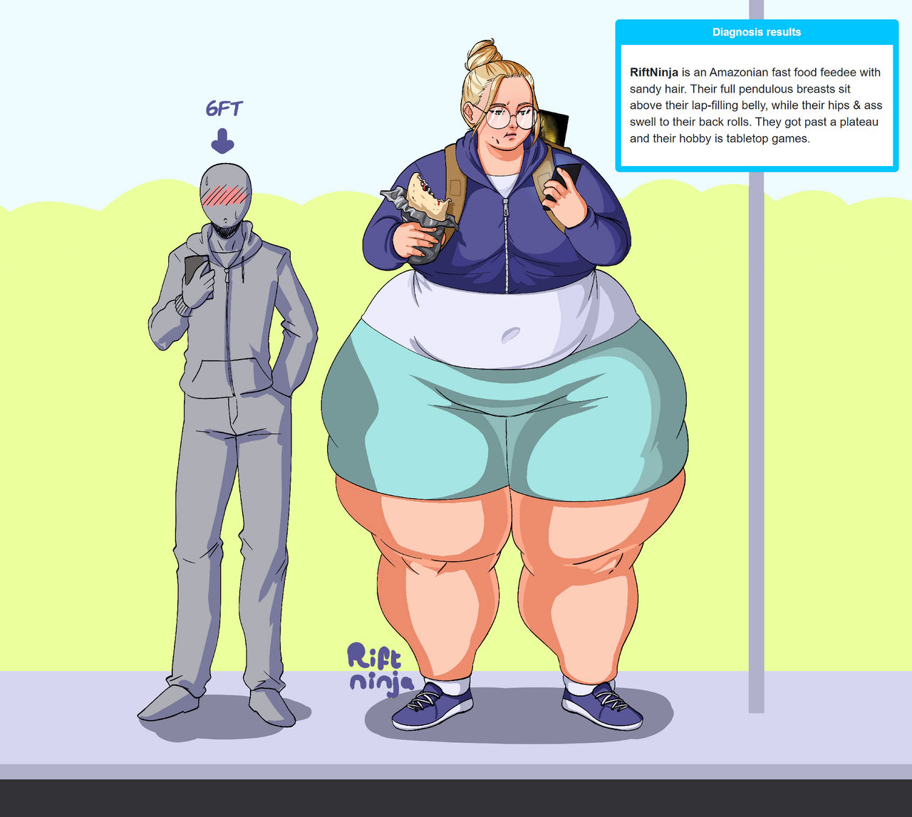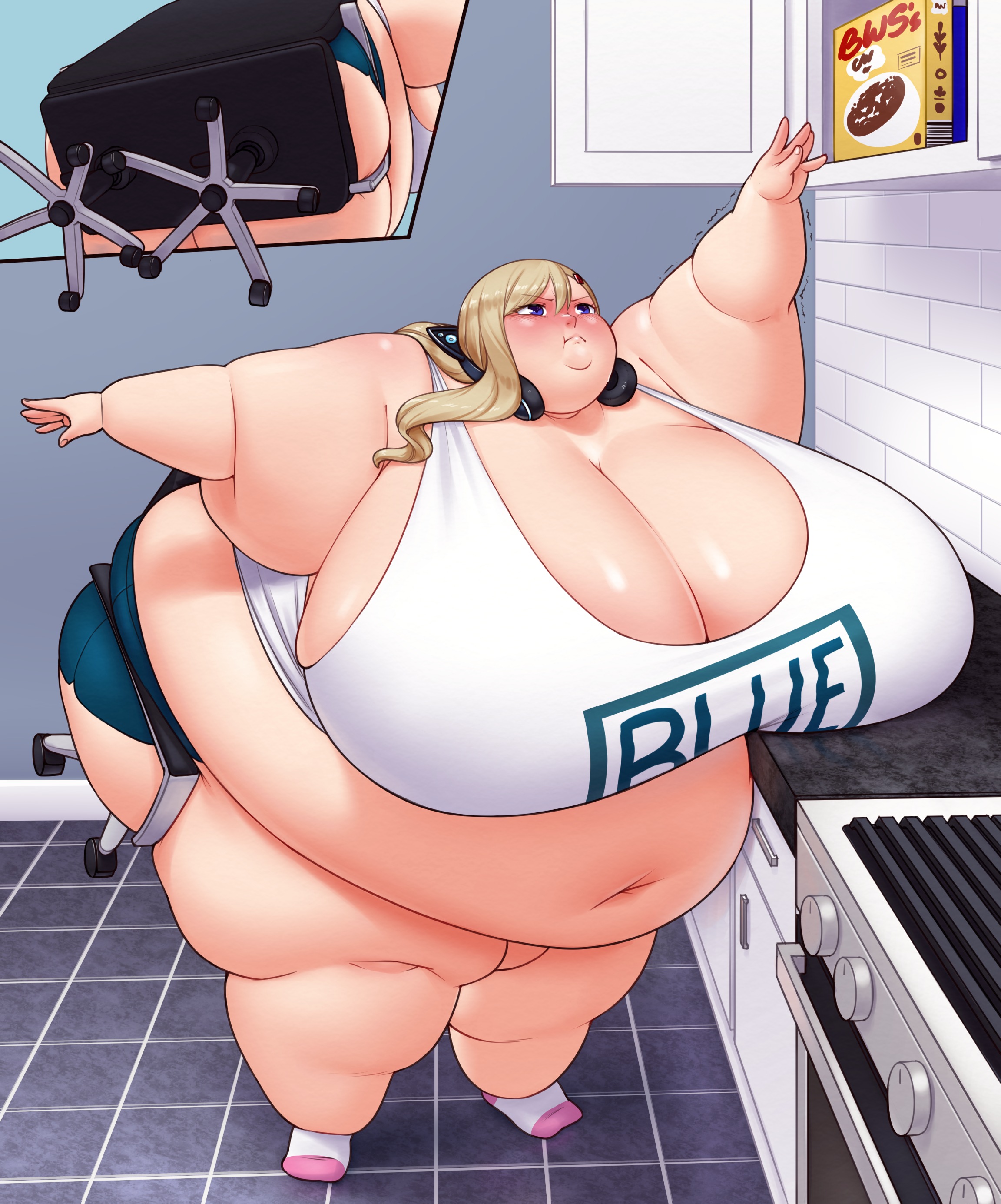I have a picture stuck in my head of this blobbed out girl wearing a VR headset implying that she doesn't actually know how big she is because it's been on the whole time, any anons here have that image?