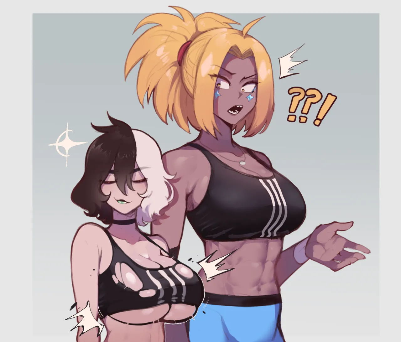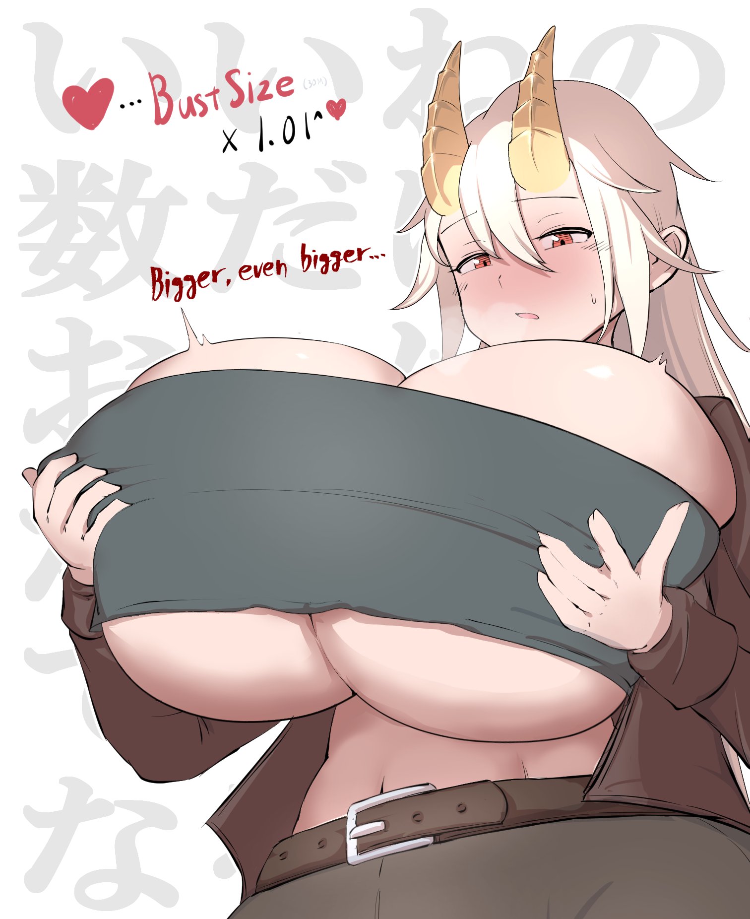 >>1149245311491953 here.Okay, so her 'thing' is thinking that all the milk she drinks will cause her to lactate, but instead causes her breasts to grow.If you're going for the heist idea, you could have her run out of easy options and decide to hit up a place she heisted some time earlier. She still knows the layout, so executing her plan should be simple. Should, anyway.She gets there and realizes that the gaps she squeezed through earlier are now far out of reach because of her growth since then. When she has to smooth-talk a guard to distract him from her stealing his keycard, he remembers her face and mentions that she looks... 'different'.Include other shenanigans during the heist to taste. Maybe she needs to move a company van out of the way to move her truck into place to steal all the milk, and she has to squeeze behind the dashboard and operate the vehicle around her tits. Maybe she has to distract a suspicious guard from figuring out what she's doing. Maybe her bra gets too tight during the heist, and she needs to use it for some task; it's only once it's damaged beyond use that she realizes that she actually quite needed that bra to help her move around easily...