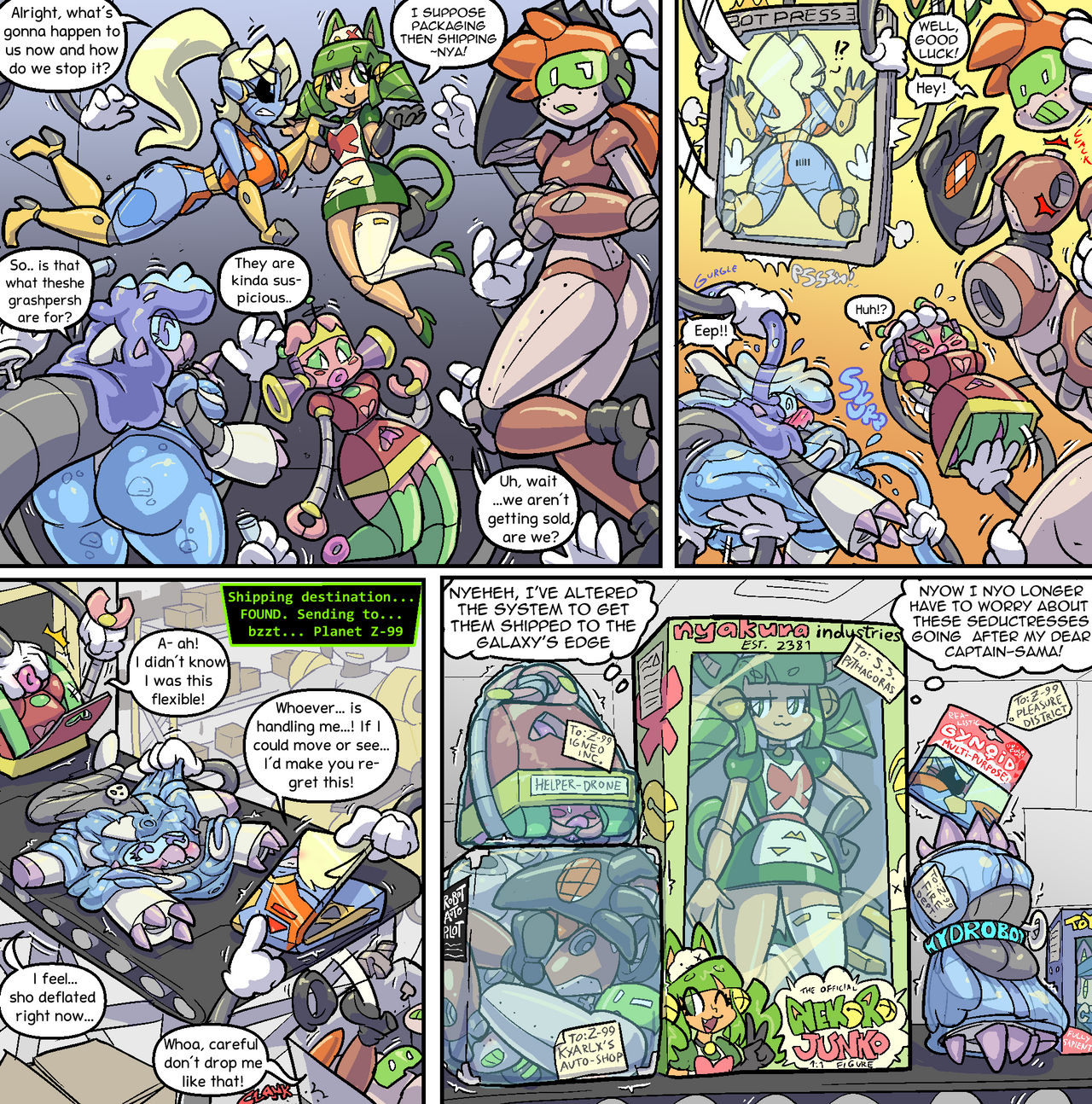 Lienna and crew have been tasked to get a robot body for Junko, the ship AI, from a nearby Nyakura Industries fembot factory. However, unbeknownst to them, this seems to be a ploy by Junko to get rid of her "competitors" somehow...