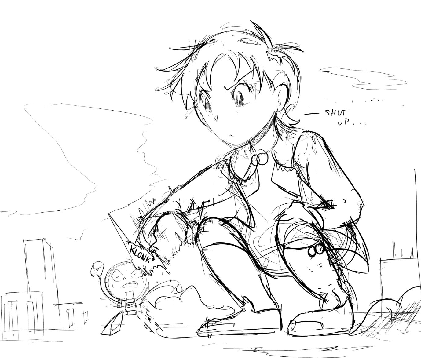 >>11489165>bratty girl challenges the boy she has a crush on>cheats to winThe lewds write themselves.
