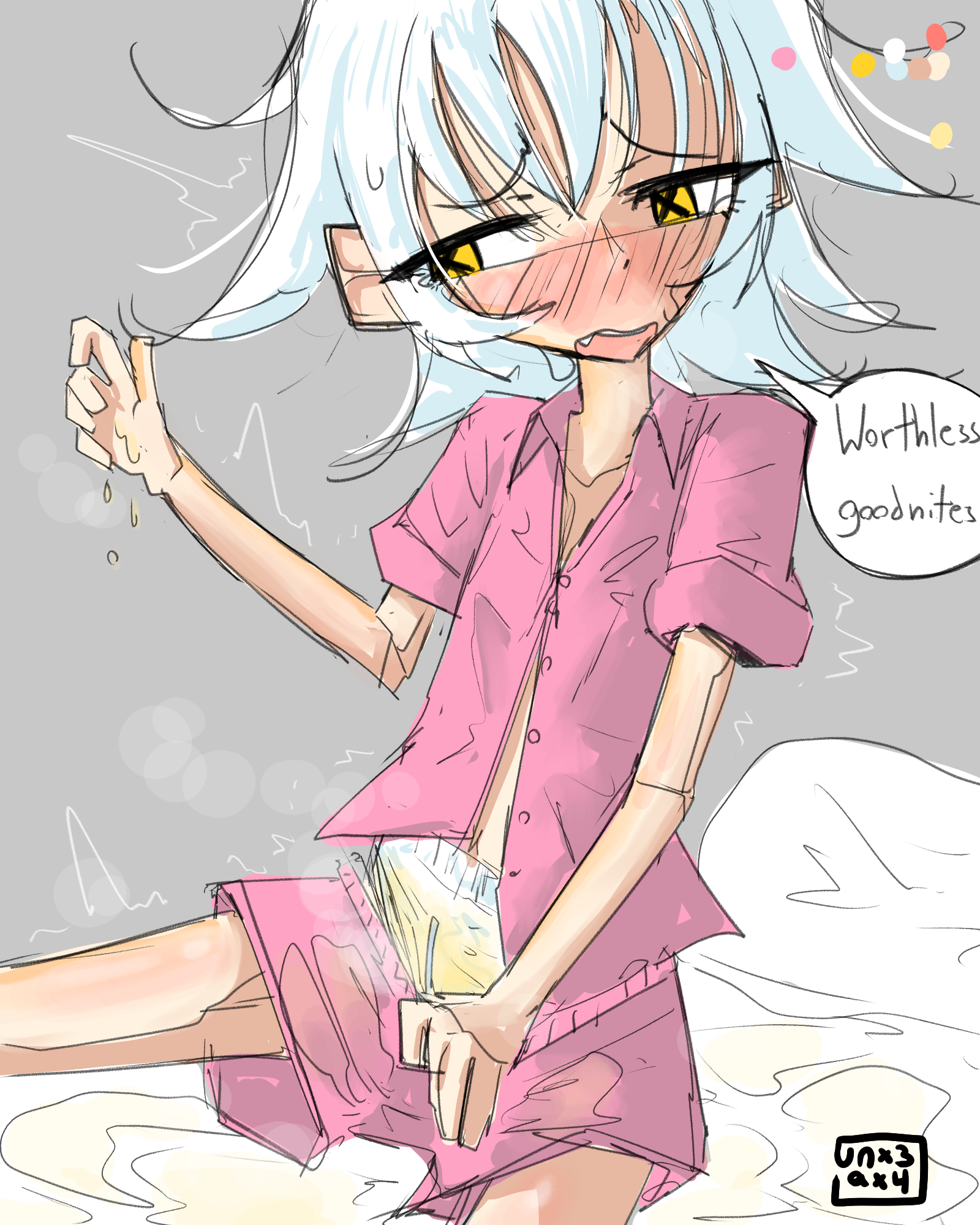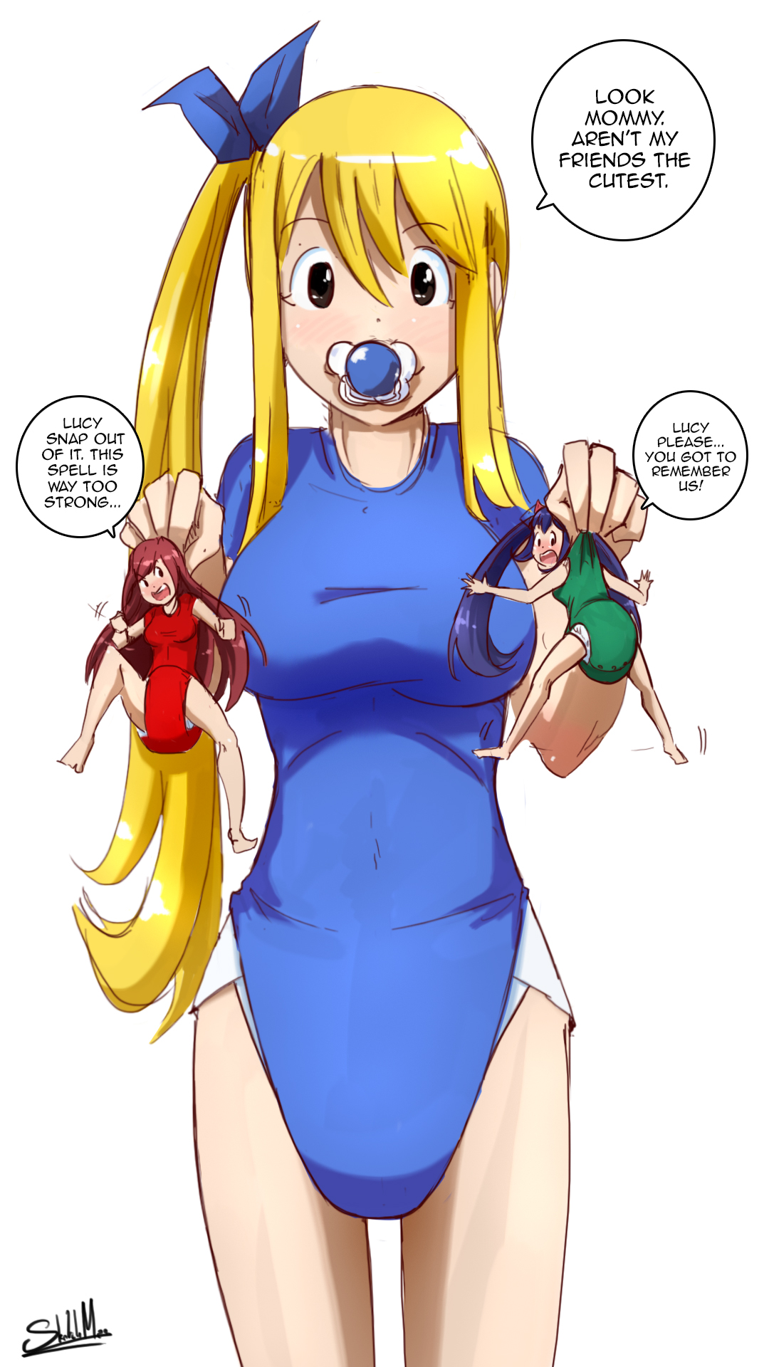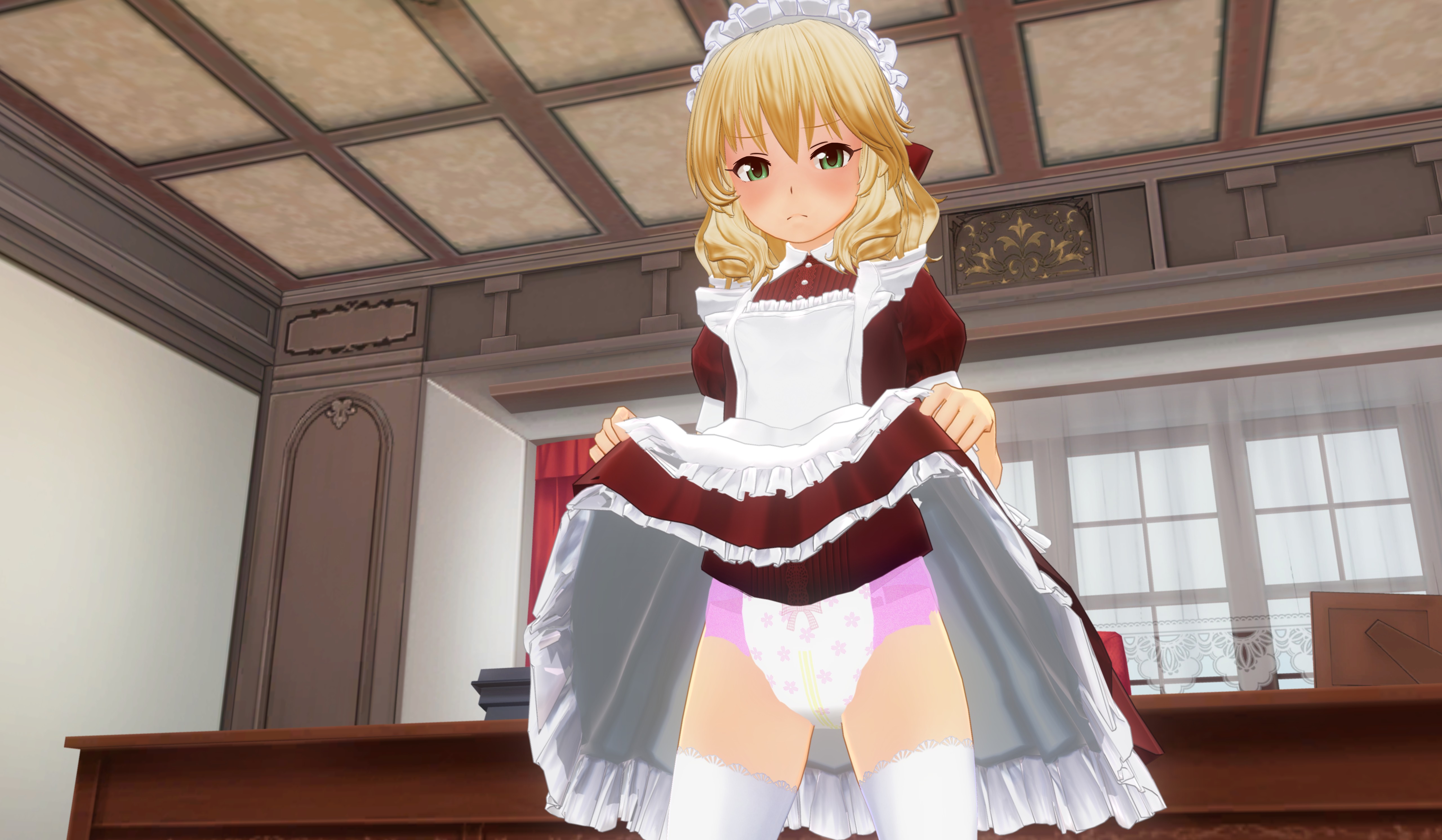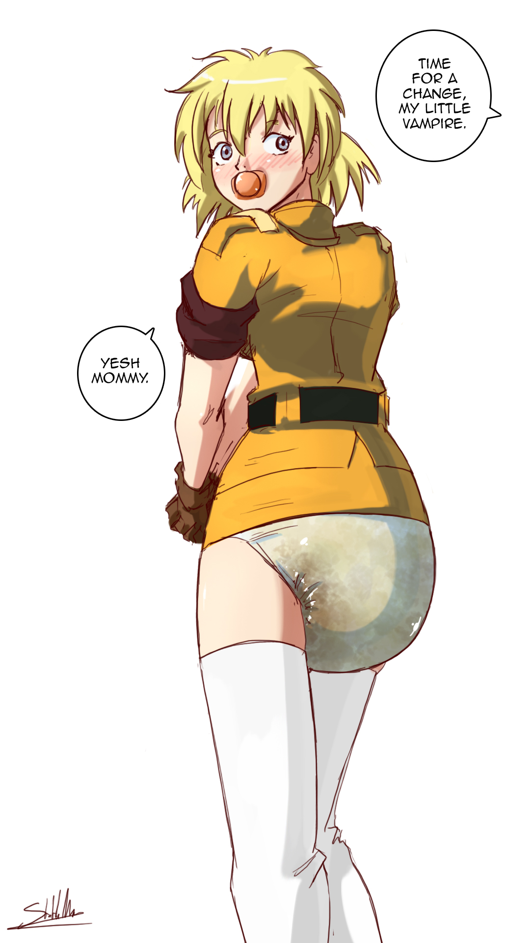 I'm in the minority and can't enjoy most diaper art. I only like them for the humiliation and cuteness aspect and not so much pee/scat. The only time I want a diaper to serve its intended purpose is for soaking up a girl's love juices. I like more subtle diapers, highleg with a bit of frills that could be mistaken for panties at a glance are my favorite. Combined with a cute miniskirt or tight shorts so they're always at risk of having the diaper peek out from the waistband or under the skirt. Either forced to wear them as punishment or a willing wearer who likes being pampered and cuddled.