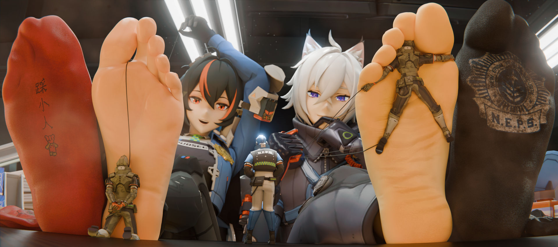 the size difference of their feet... fuuck