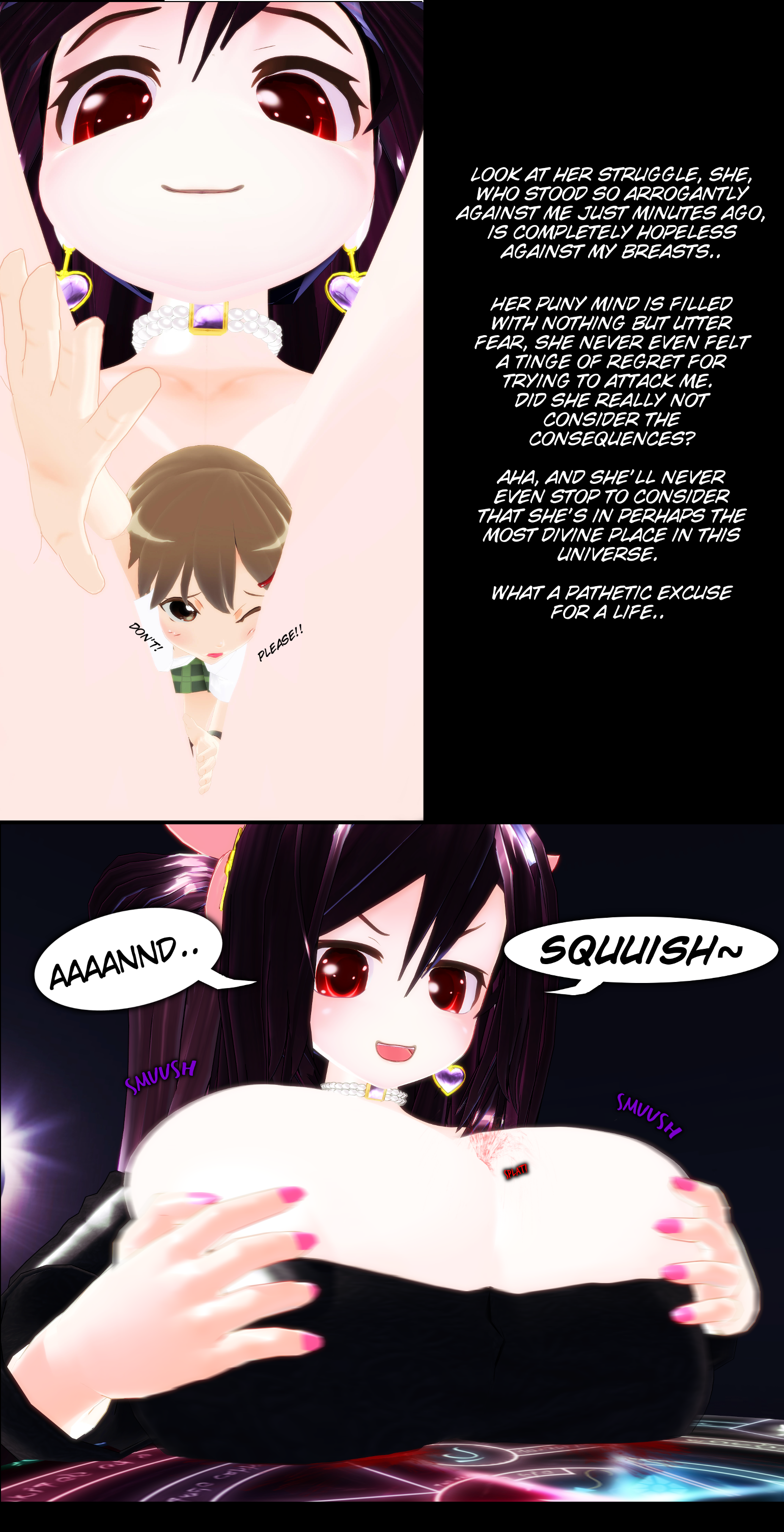 >>11505098Agreed. But also I like eternal bullying over death. You know>you get crushed by her tits and compressed between them long past when the sun explodes>an avatar sits on top of you, pinning you under its butt for the rest of timeI like size afterlife’s and want it explored more with bratty goddesses. The time dilation breast crush was peak