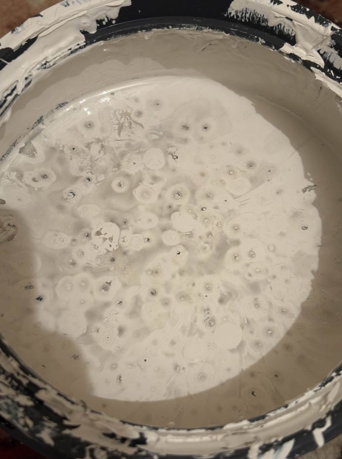 Solve an argument I'm having with my wife: Old bucket of paint, has been sitting for a few weeks. Is this mold, or paint separation?