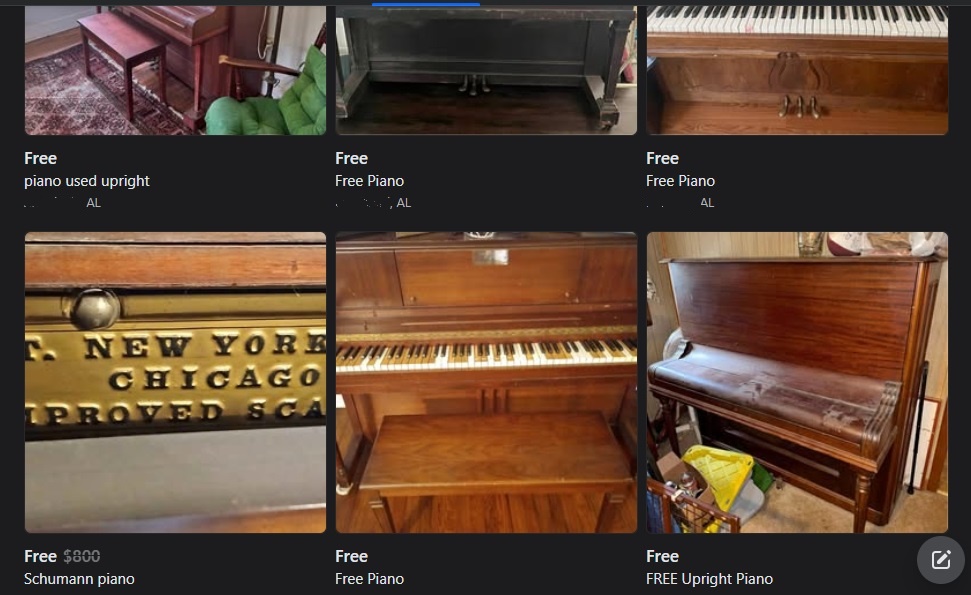 I see free pianos constantly on market, I have equipment to make moving them fairly easy. How can I make some money with these? Are there any valuable innards if I pull it apart? Anything cool I could build with the parts of 10 pianos?