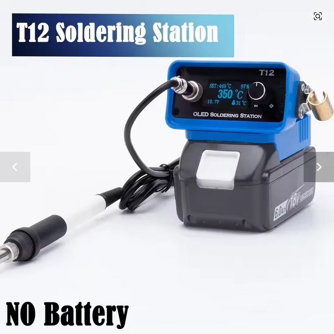 Any of the T12 soldering stations that attach to a power tool battery (usually makita)