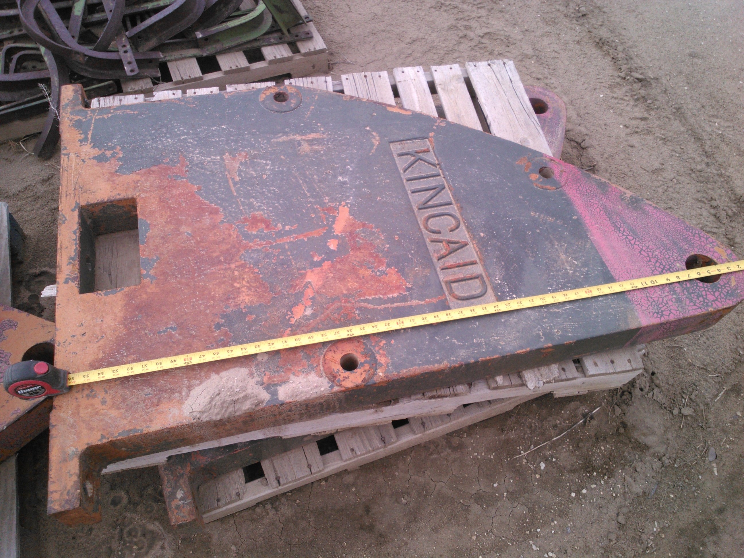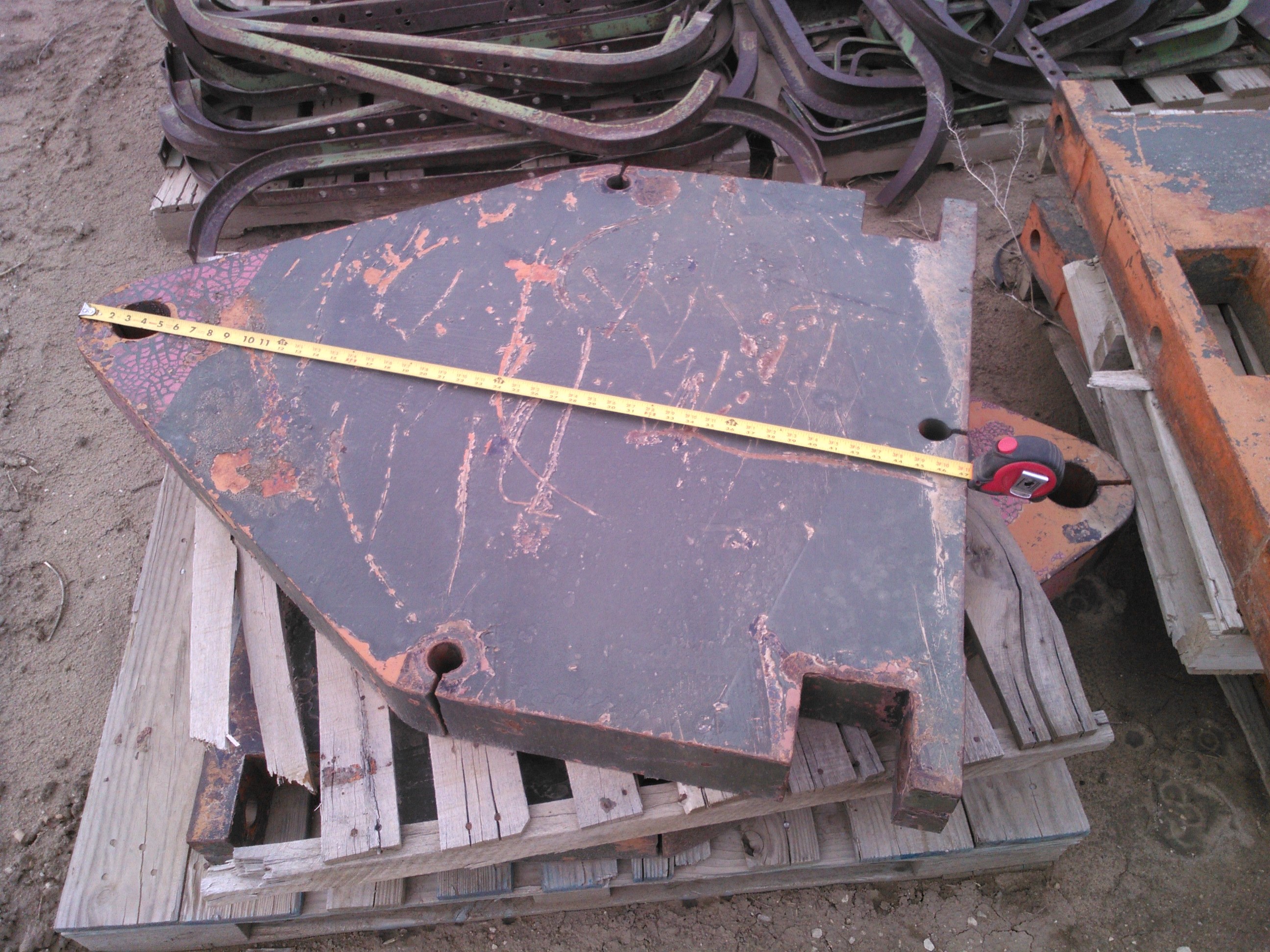 >>2976755Took some pics today. Went to town to get some oxygen bottles and co2 bottles refilled but the welding supply house was all out. Truck comes tonight so I'll get em in the morning. Figured I'd swing by and check out those weights while I was thinking of it. These two (one right below it that matches) are 56" long, 34" wide and 4" thick with the one tapered end.