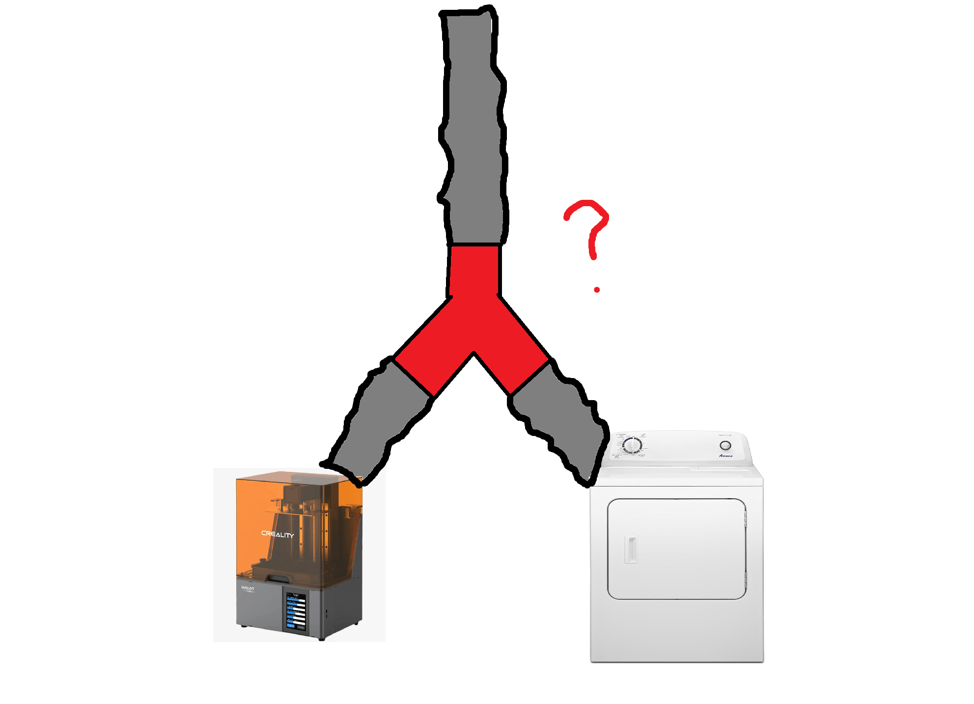 For reasons, it would be best for me to put my 3d printers in my basement laundry room and I don't know enough to start cutting holes in the wall. Seems the simple solution is to build a new enclosure around my printers and then get a Y splitter for the dryer exhaust and let the fumes get sucked out that way. I don't know fairly little about airflow, but I imagine if I just did exactly that I would either be blowing noxious fumes into my clothes dryer, or if the dryer was running it would blow moist air and lint into my printer enclosure. I'd rather not fuck with any kind of manual flaps or valves or anything especially since I dont want to plan doing laundry around when my printer is running or vice versa, if those kinds of things even exist because I'm sure you're not normally supposed to add extra shit onto a dryer's exhaust. And since there's lint that'll be flying around in the exhaust that probably makes rigging something with a fan or a valve or anything ineffective or even hazardous is there any hope to this idea