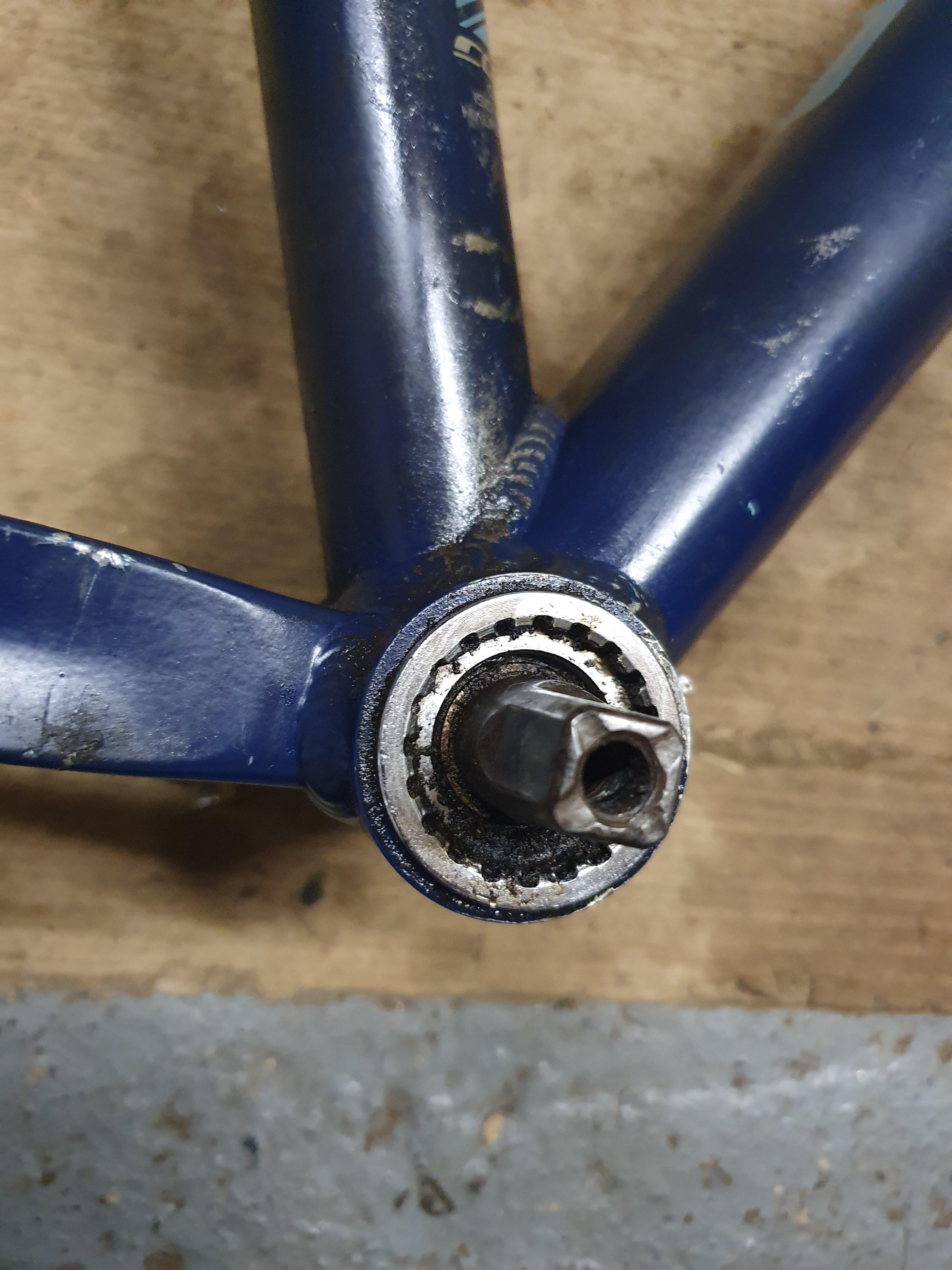 >>2970538Former cycling Pro here. Be sure you are rotating it in the correct direction they come off counterclockwise on the drive side, clockwise on the non Drive side.You can also try heating up the metal of the frame around it with a heat gun not a propane torch.If it still doesn't come, then one thing you can do is you put the bottom bracket tool into a vise standing upright and then use the longer lever moment on the frame to unscrew the cup