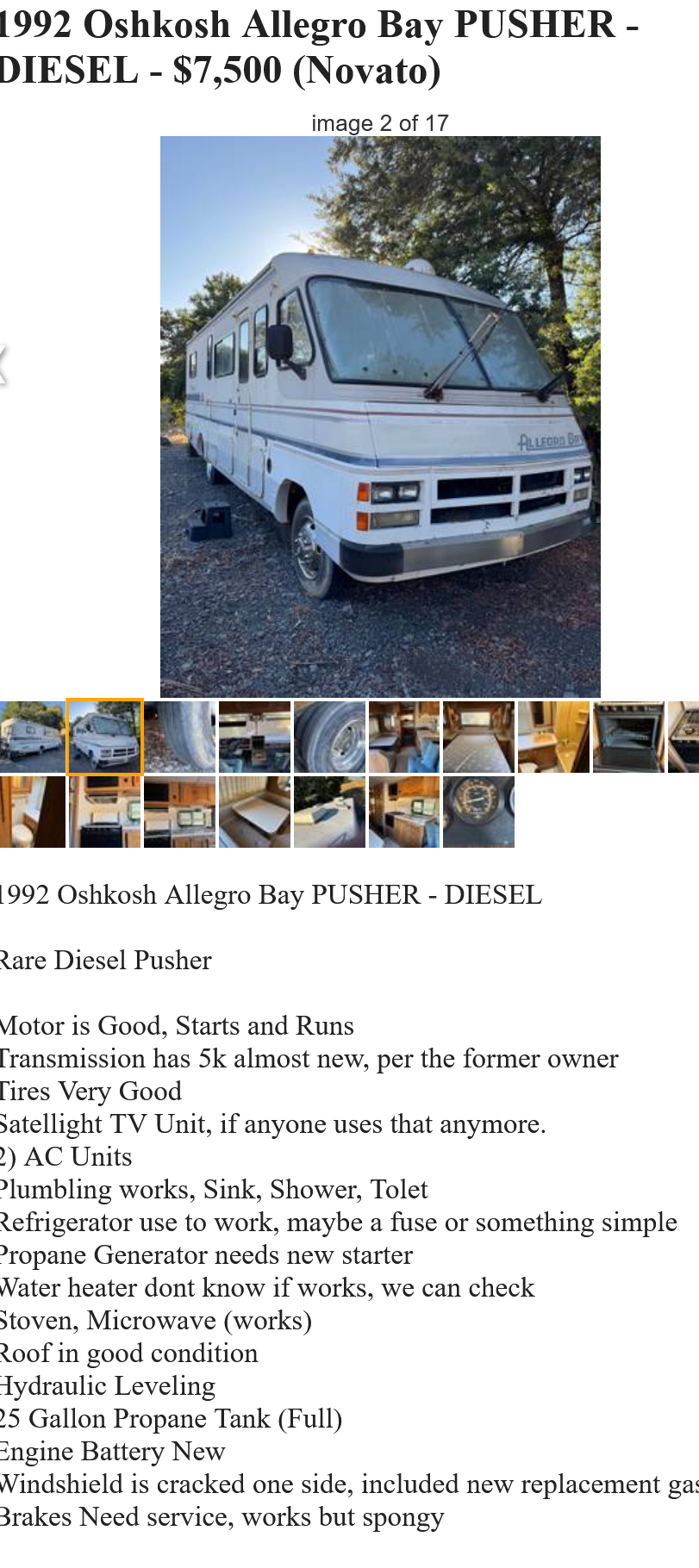 how nuts would I be to buy a POS like this?Never worked on any RV shit, but I'm an old carpenter and have done all my own auto-repair.I hear nothing but horror stories about new RVs, no matter how much they cost.or thishttps://sfbay.craigslist.org/sfc/rvs/d/milpitas-1995-coachman-rv/7909649068.html