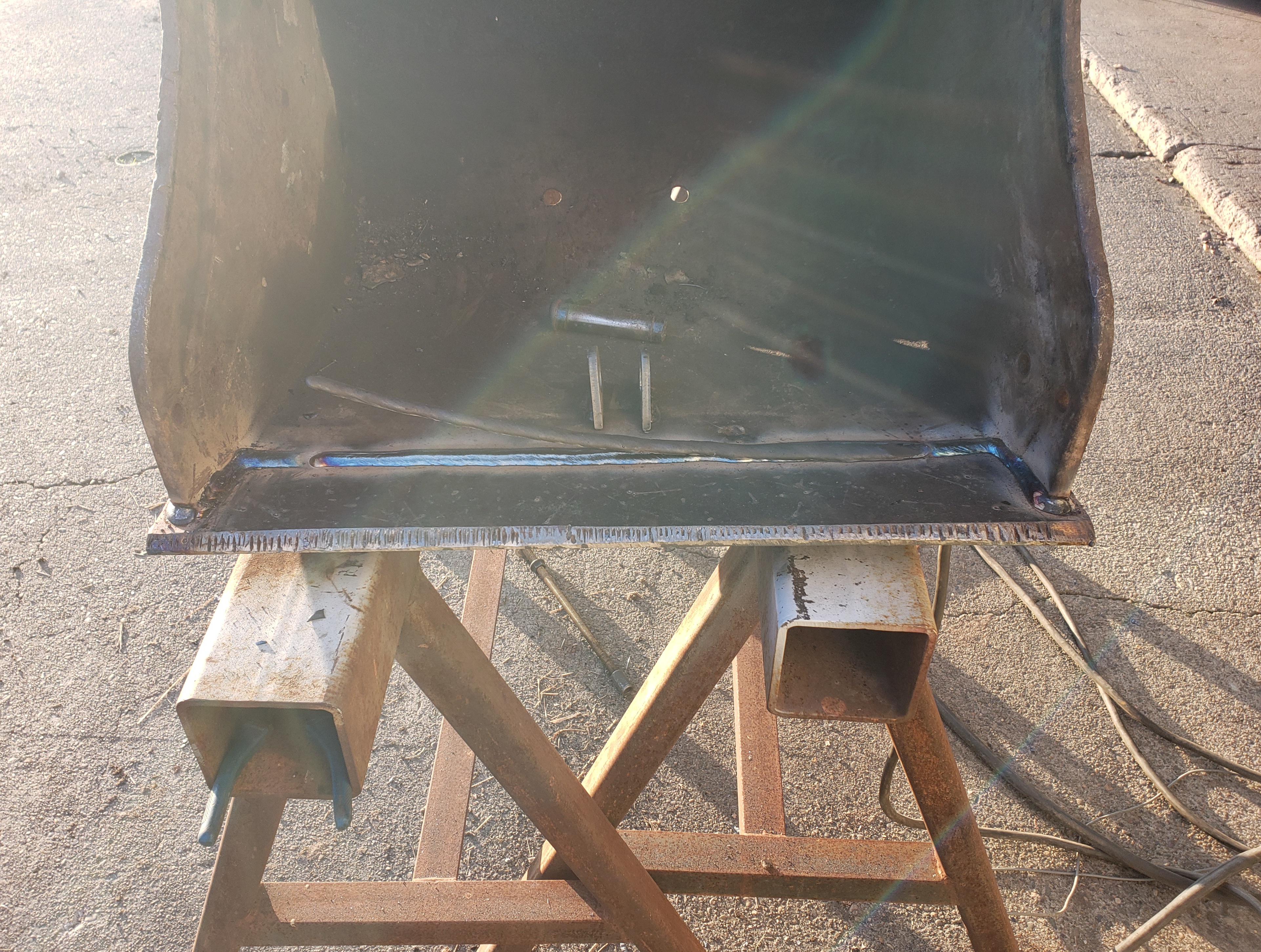 >>2956336Look at this fancy guy with his 7018... 6011 is my go to for most farm related welds. The needle scaler is my friend.