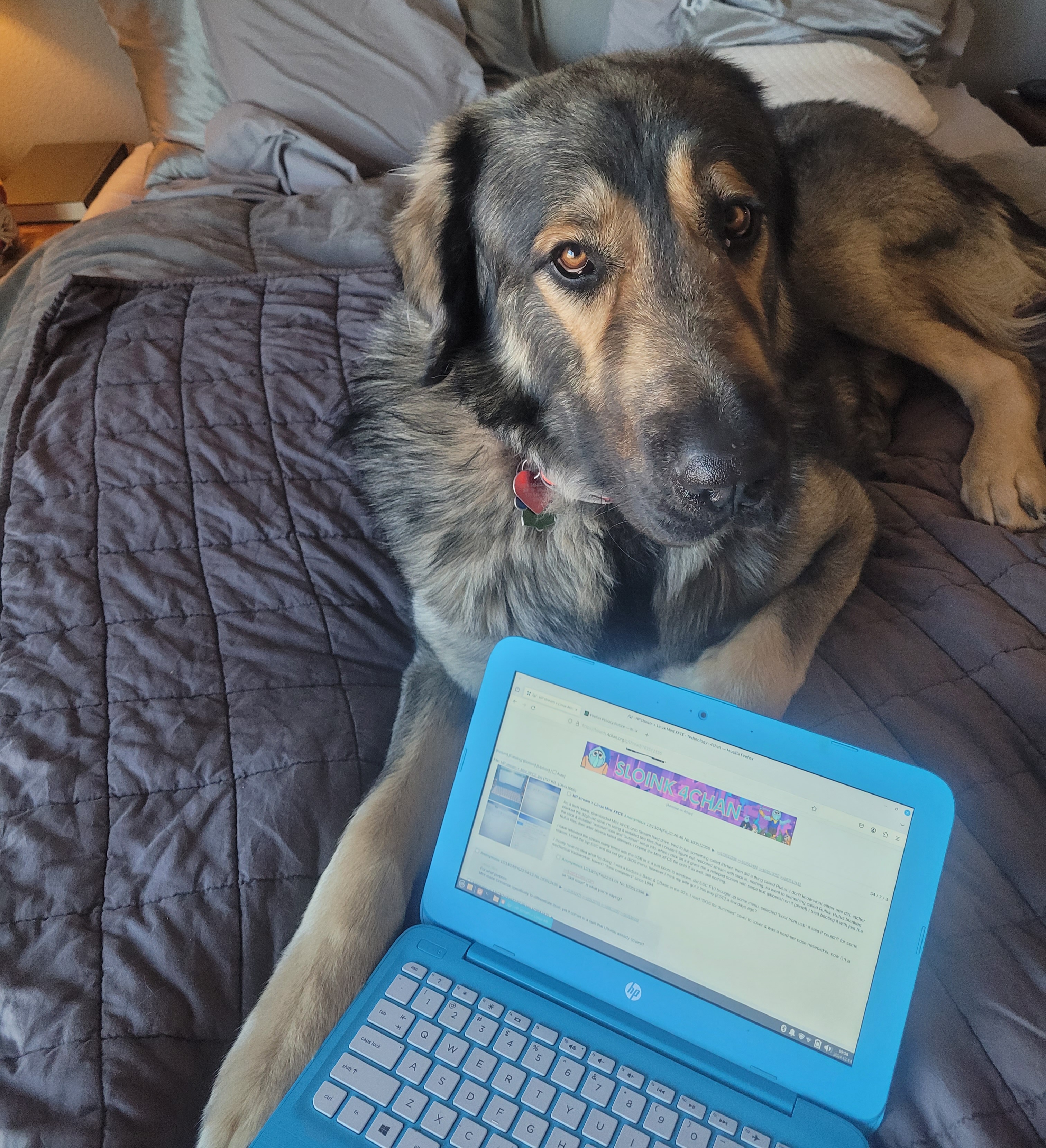 My little HP Linux Mint XFCE craptop is a similar story. I actually found it in the same eviction/remodel as the tablet. was passcode protected, but the lockscreen wallpaper had a giveaway password clue: "Last name 13". password was literally the evicted's last name + the number 13.at that point (December 2024) I knew exactly Ø aboot modern computers, software, or coding. I tried to just use it as-was with the factory-installed Windows 10. it was totally unusable. could not update due to storage constraints (<2GB available) and it would take up to 2 minutes to load/view a 4MB image on Chan.I knew aboot Linux from my childhood nerd days of Basic programming. I had never used it or even seen it, but I knew the older, better computer nerds gravitated to it. Anon from /g/ suggested Linux Mint XFCE. I dug around the ol' junk drawer and found a 32GB USB stick from the wife's old job. I found the XFCE file somewhere, downloaded it and probably some other bootloader crap, and after a bit of frustration & fucking with it, got it to install, boot and have been learning Linux & Terminal command ever since. Now it has 15GB eMMC available + the 32GB SDHC mentioned in the Galaxy Tab-A story above.My XFCE craptop is now my daily driver. I don't touch my wife's $3k Mac because I am notoriously hard on equipment. if I fuck up my Craptop or spill coffee on it, little is lost. it's main purpose is tracking my dairy sheep pedigrees and shitposting on 4Chan.2 months later, the battery failed & bloated. I got another one for FOR FREE from Amazon Vine. watched a few how-to videos on installation an voila: new life!total cash investments on these projects: Ø.00if I ever find the motivation & time I might consider learning Python or some other useful language, but as it stands now, I have more tech than I need as a Farmer/Rancher/Tradeworker.