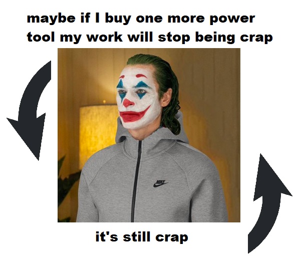>>2950940power tools help generate crap much faster and they help hide crap workOP is artisanal. We're making carryout vs fine dining.