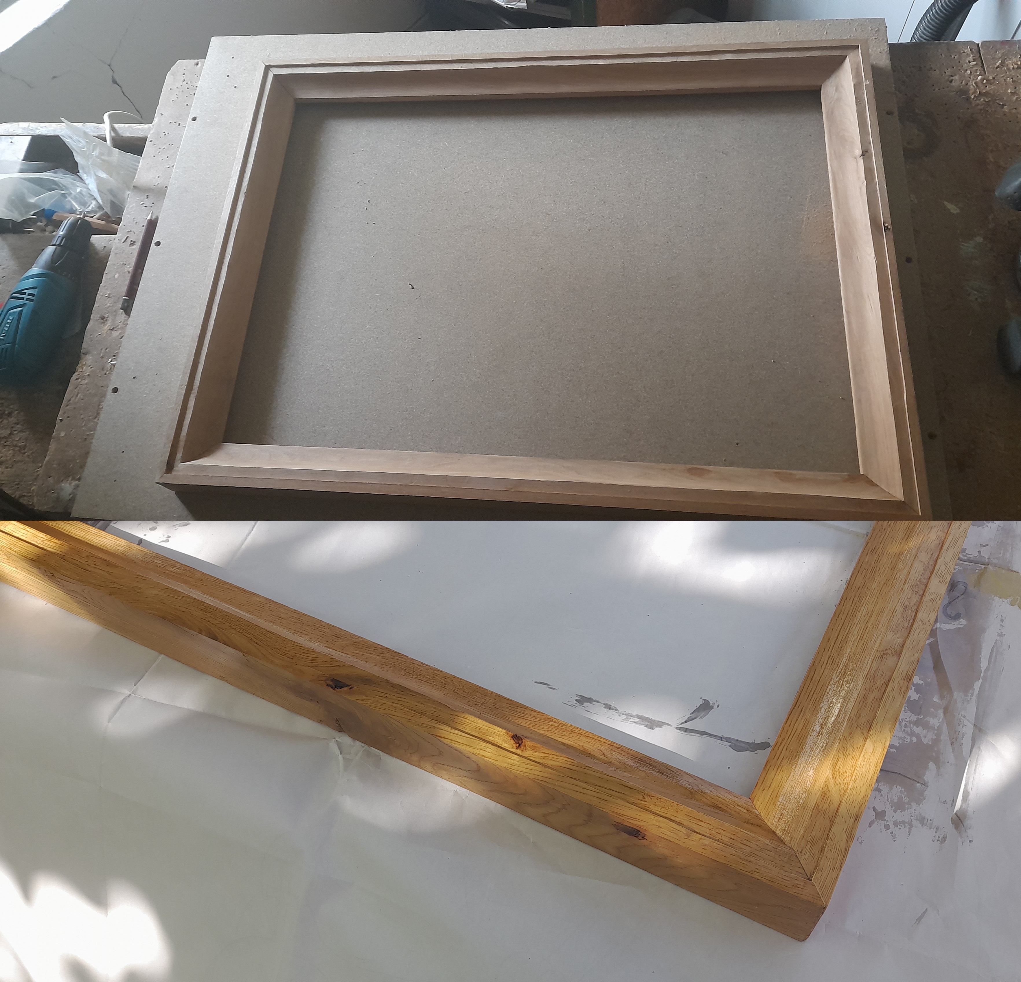first frame jobthings used: manual miter, a router, a chisel, already planed oak rectangles