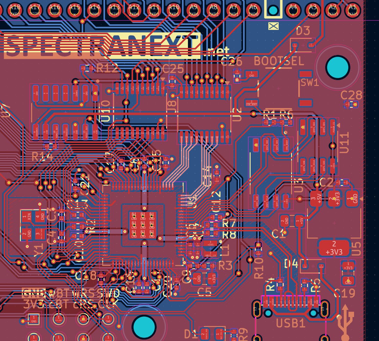 >>2955592ah, I've already sent this version for production - i've taken PSRAM chip closer, made CS line shorter, and in a follow up pic put ground plane for ZX buffers into a separate region.