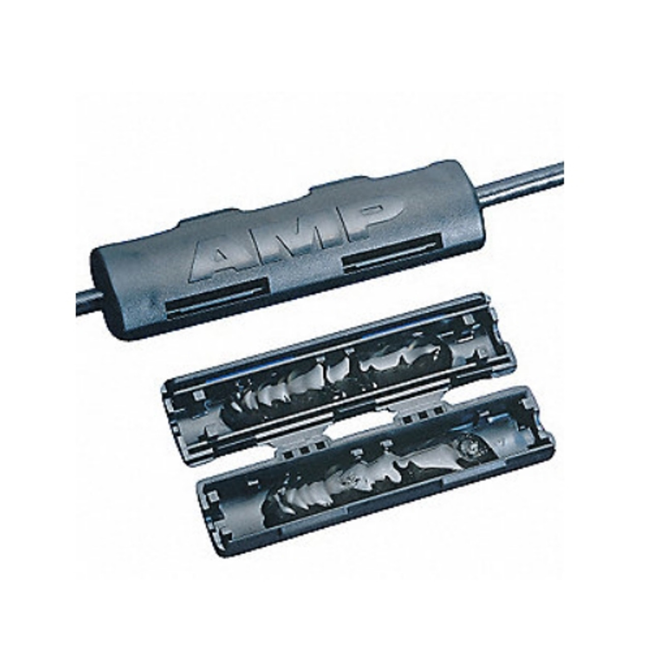 A gel-splice case that is crimped over a barrel splice, usually use to protect buried cable after it has been repaired. The “spooge coffin.” The manufacturer actually started dying their gel blue because of this.