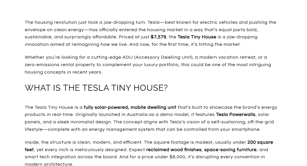 >>2964595forgot link, you can get one for about 8 grand.https://pezziniluxuryhomes.com/blog/dollar7579-tesla-tiny-house