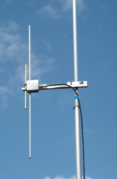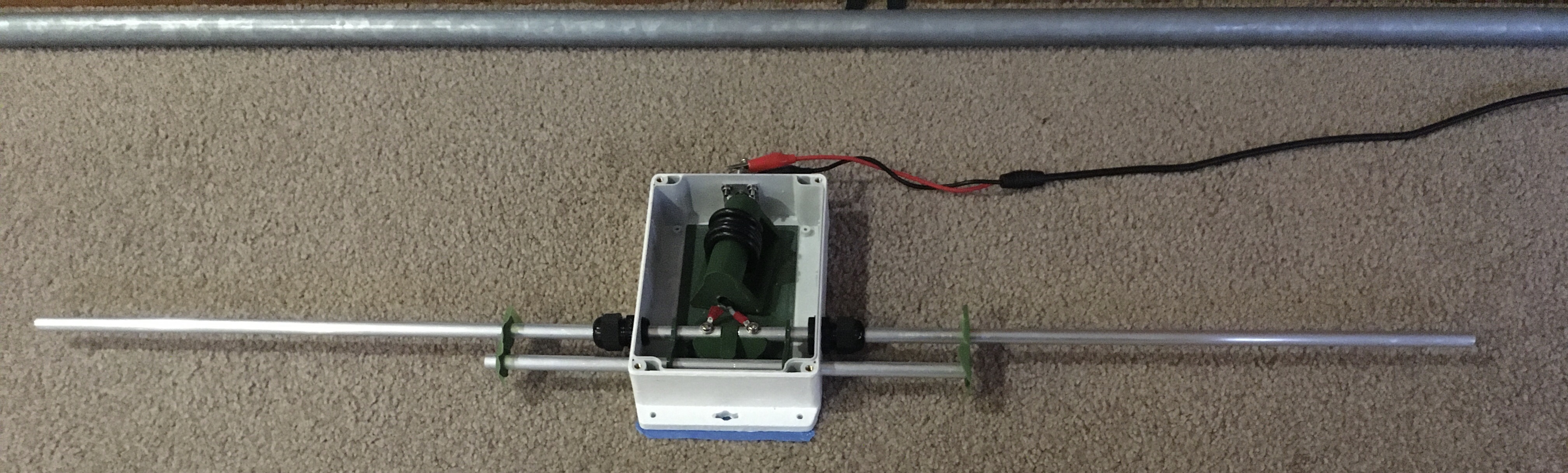 >>2962152I was thinking maybe the antenna amplifier stage might produce some strange results (e.g. mixing) with reflected signals, and the received signal amplitude would be lower. But now that I attempt to calculate it, the output impedance of that transistor amplifier will be in the ballpark of 30 ohms, dependant on current gain and transconductance, which should be fine. If it was like 3 ohms then it would matter more.Yesterday I hammered an aluminium rod into the ground beneath the antenna to earth it, since I heard antenna earthing is important for capacitive antennas like these. There’s a hole in the bottom of the antenna casing now for the wire, I figure it’s better for pressure and humidity to be able to exchange freely with the inside of the antenna, as opposed to trying to withstand the pressure and keep the inside dry enough not to condense when it’s cold. The antenna is supported atop a pipe so there’s no path for water to get up inside the antenna.Also made some wooden brackets to hold that pipe.Hope I can actually hear something through it in my suburban foothills, be it on SDR or on my handhelds. I’ll be building that 70cm/2m dipole soon too, which I have fewer doubts about.