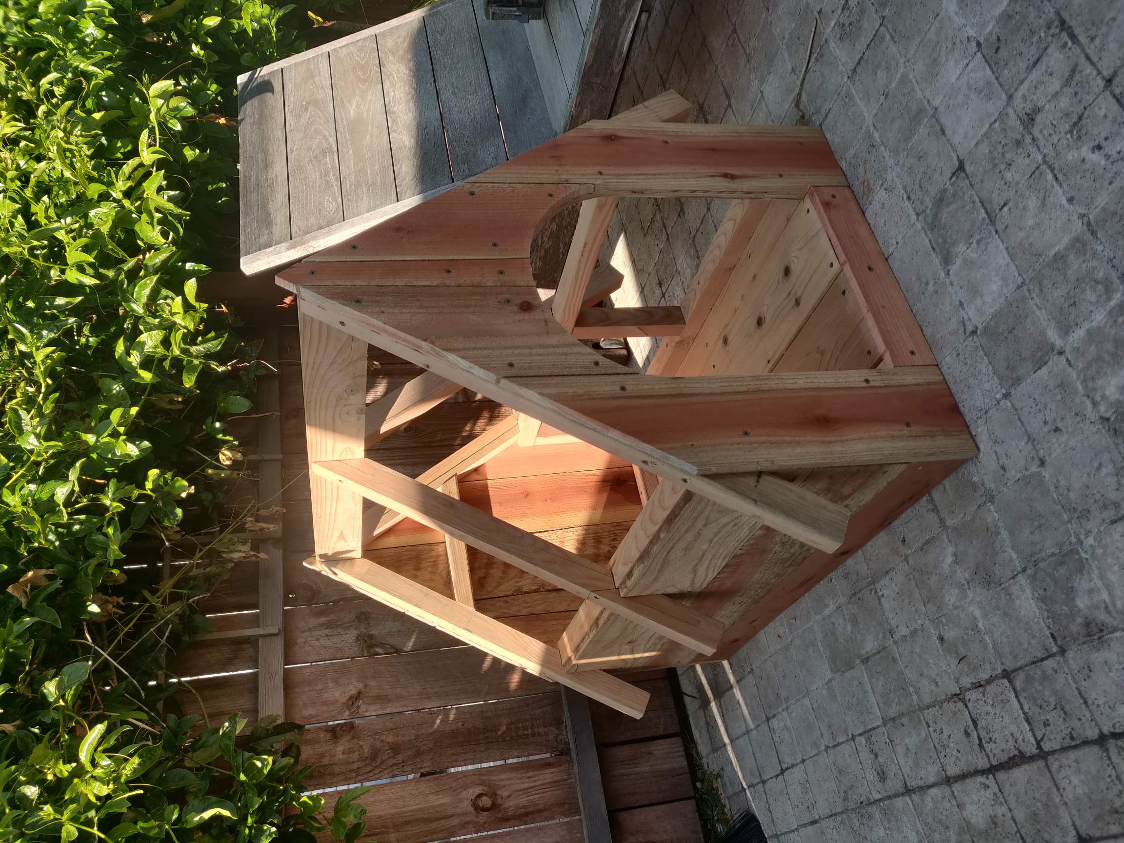 >>2964277Redwood siding. There is a layer of plywood behind the front siding that allowed me to get the siding nice and sturdy without adding more framing