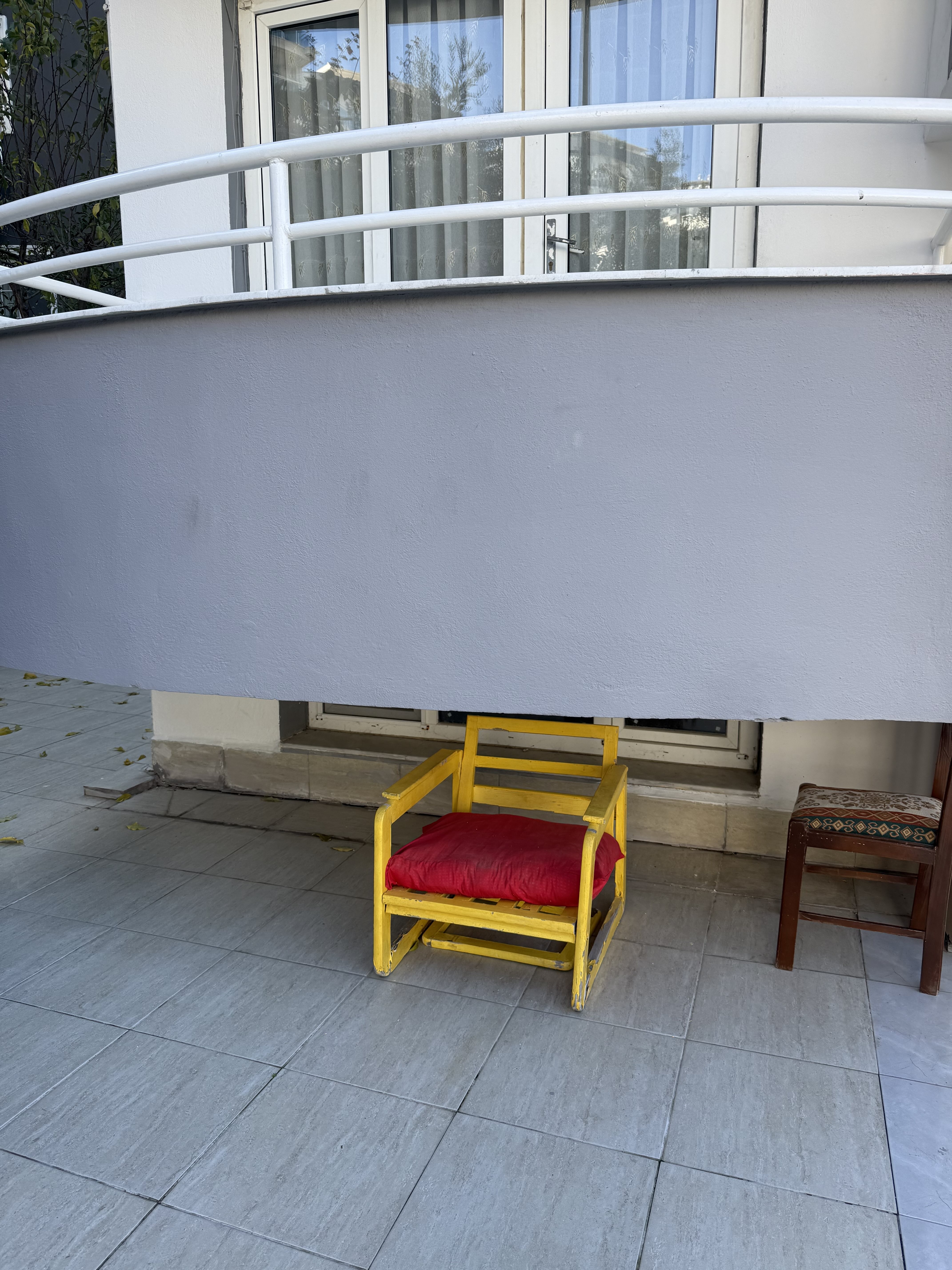 Ok I got a solution, but before you guys rip me a new asshole I need to provide some context. This is for a street dog, where I'm living (Turkey) street dogs are not aggressive and the people take care of them.In my apartment building every floor has a balcony and we have this street dog that's been coming and sitting in this chair under the balcony since it's getting colder (and sitting on the chair isn't as cold as sitting on the floor). He's a really soft and sweet dog, we feed him regularly and we wanted to do something a little more for him, particularly to shield him from the wind going under the balcony.