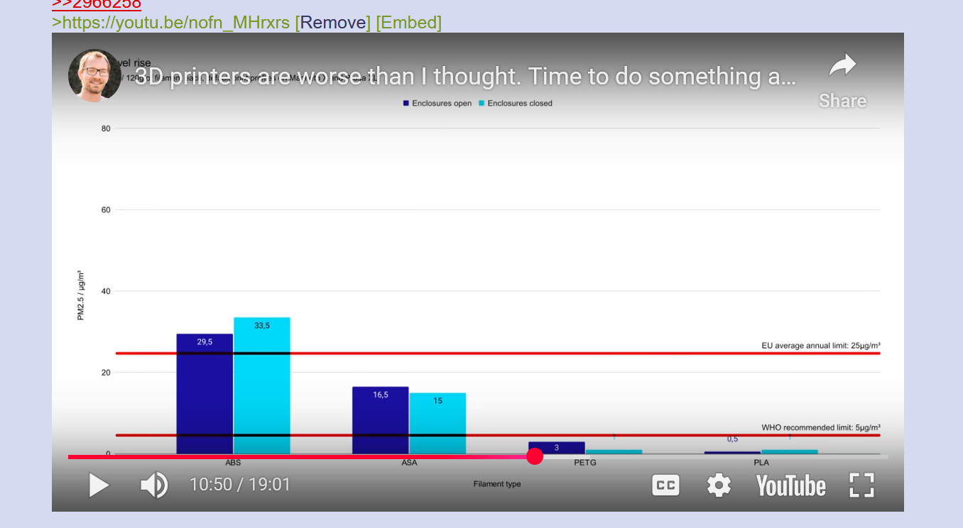 >>29696873D printing at home is a relatively young thing, we don't really know yet and I sure as fuck don't want to find out in 20 years that I'm about to die in the worst way possible because I wanted to print landfill trinkets and was too lazy to set up a separate room for it.