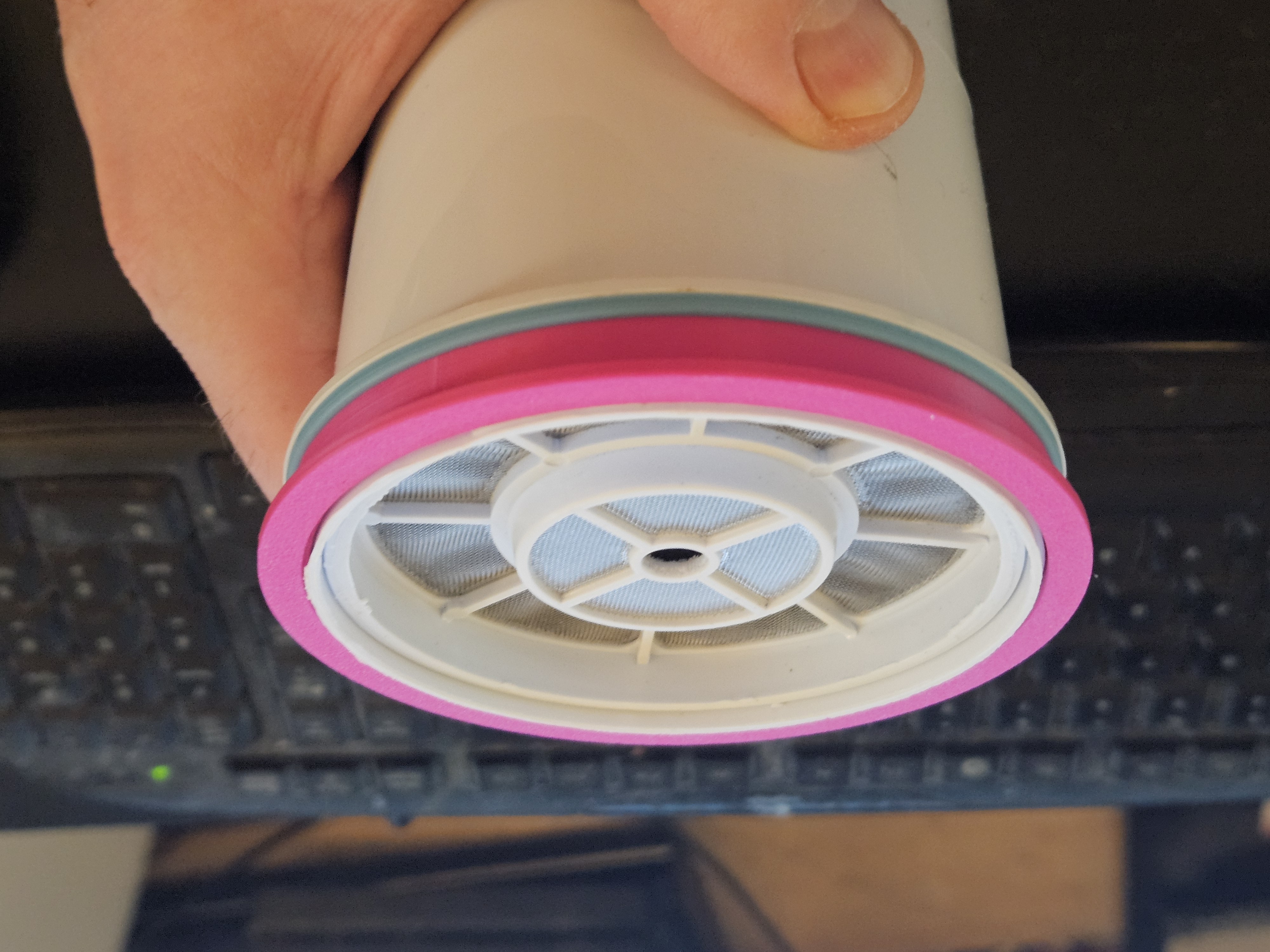 >>2965434Use a duct to force the inlet and outlet to be far from one another.>>2965468From my experience, printing anything larger than 500g probably isn't worth it unless you can't avoid it. Below a certain scale, you can lighten up prints with infill thanks to the square-cube law, but the bigger you make it the thicker it needs to be. When we're talking about holding up multiple kilograms of mass, you're starting to get to that less efficient design paradigm. Larger prints naturally take longer to make and use up more material, and need a larger printer to make, though if you can use ABS it will probably be decently strong and decently cheap. With a larger nozzle (e.g. 1mm) it might be worth making these.As for the design, personally I'd slant them more, maybe 45 degrees. That or have the bottles on their side with a hole at the bottom-front, just like those battery dispensers where they roll out the bottom, but that's probably a bad idea for something carbonated. Instead of rolling out the bottom, maybe you push the bottles up through a similar hole at the top-front. With a slot in the front for fingers, or maybe a lever. Could even make it ratcheting so the bottles don't go back down, though that would make the centre of mass pretty high.Do you use a CO2 tank? How feasible would it be to have it carbonated on demand as the other anon says? If it's just tap water and CO2 it seems unreasonable to store it in its least dense form. Just take one bottle off the machine, and put another uncarbonated bottle on as you do so.