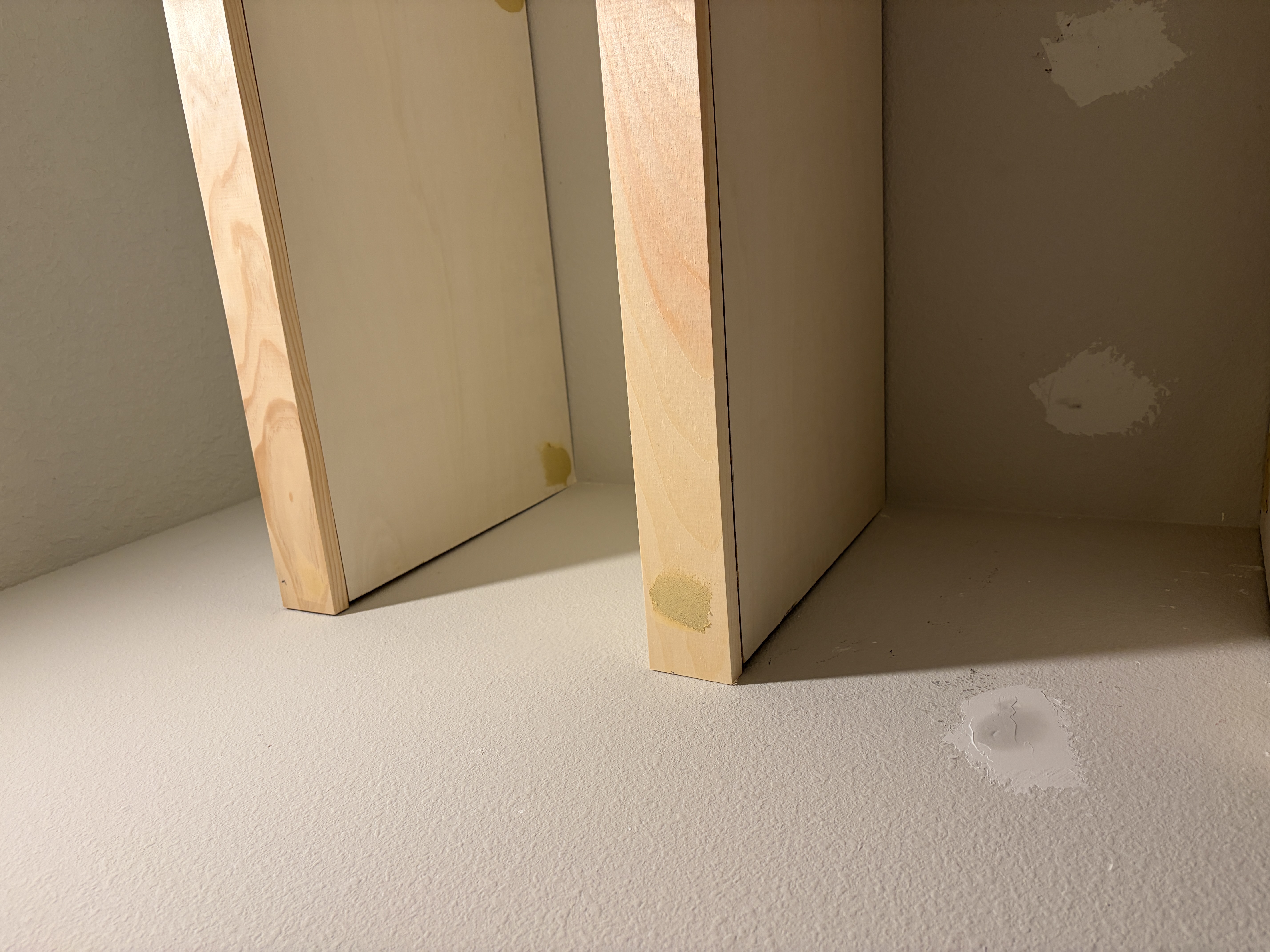 Can I build a cabinet without side and back walls? (Green parts). It’s supposed to go into the side of my bedroom and it’s not supposed to move around, so I don’t have any need for it. Plus, it seems like stick framing would work for this purpose. Also, I want to skip the “floor” of the cabinet since I’m somewhat height limited as have the doors and drawers about .5 inches or something above the hardwood floor of the room so that I can open them without scratching the floor. I’d assume the small gap produces a shadow so that it looks ok. Or did I overlook something and I must absolutely have walls on all 6 sides of my cabinet, even if 4 sides are fully touching already existing walls and floor?