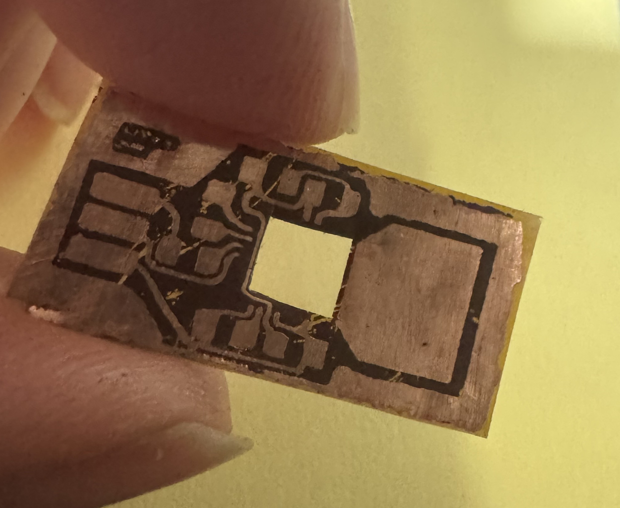 >>2980782I would be careful dumping lots of solder onto the copper, you dont have a soldermask.Solder might very easily move from pads down your traces, or bridge between pads/traces and cause shorts.
